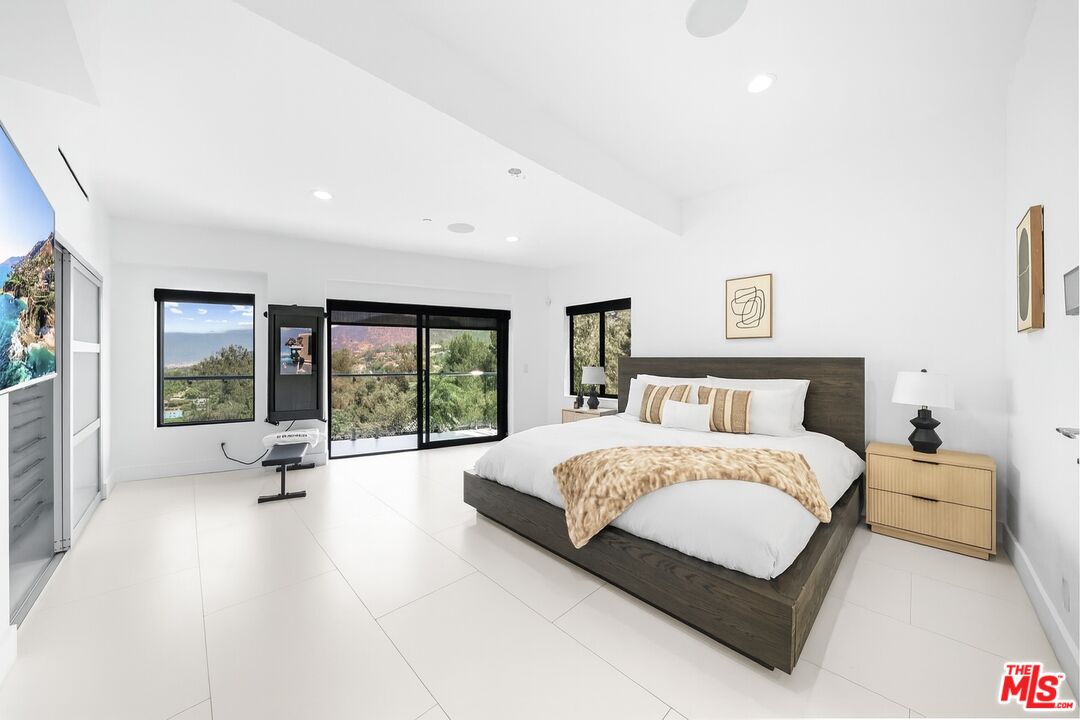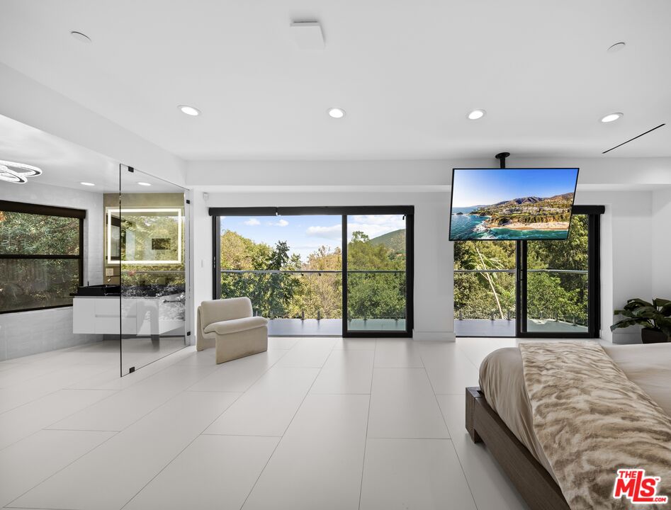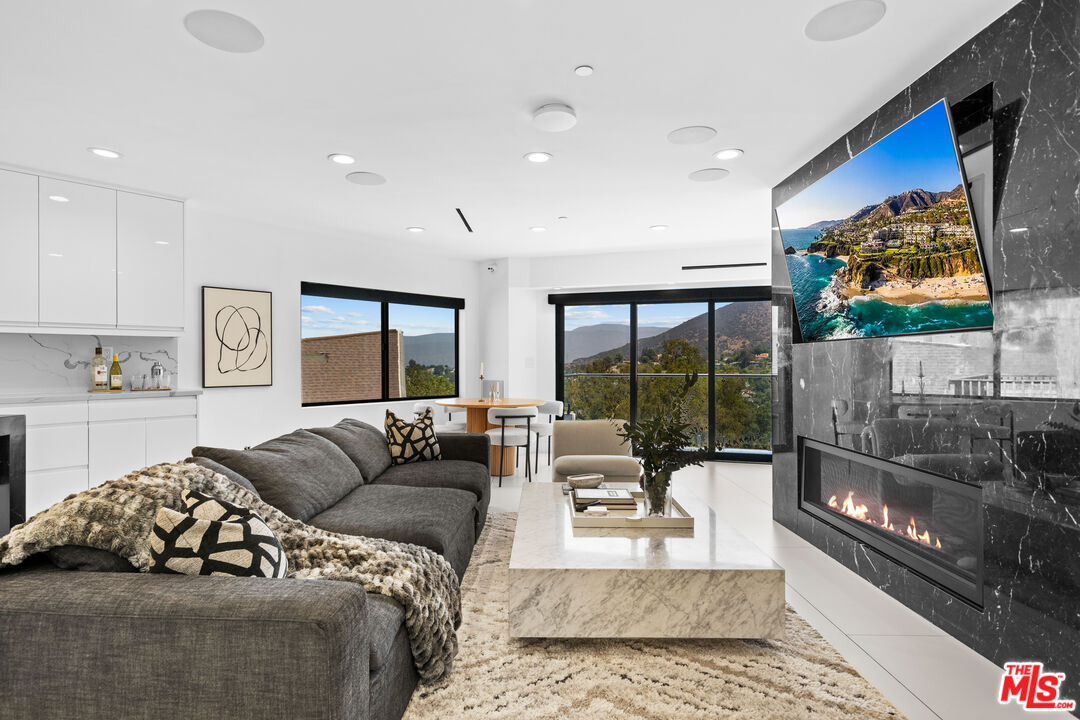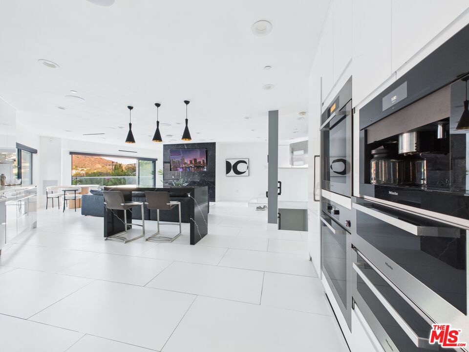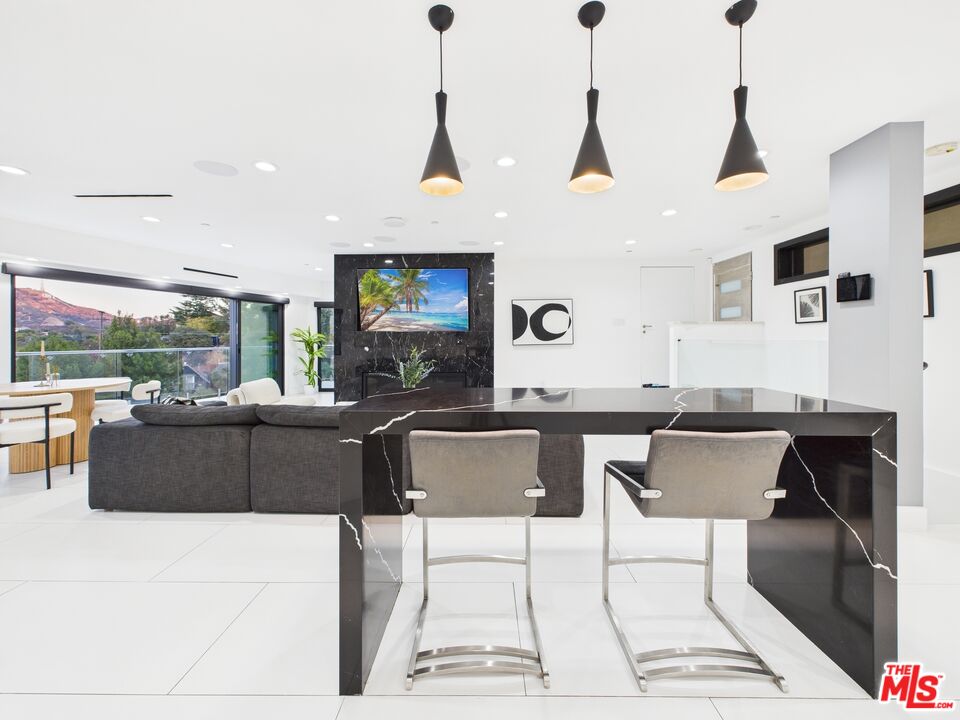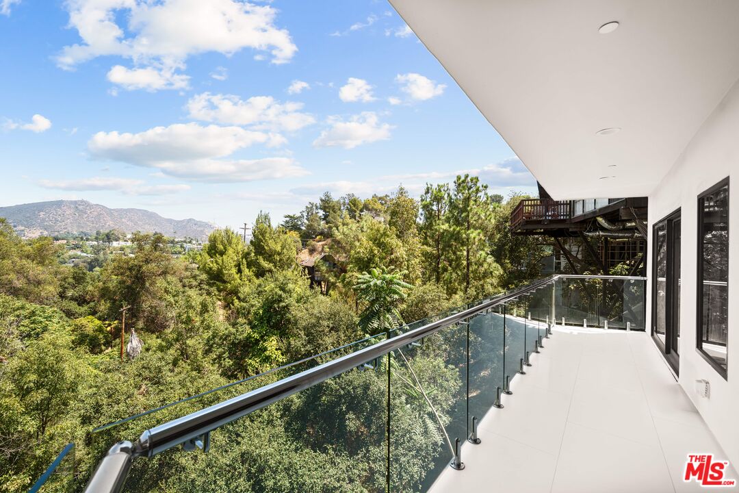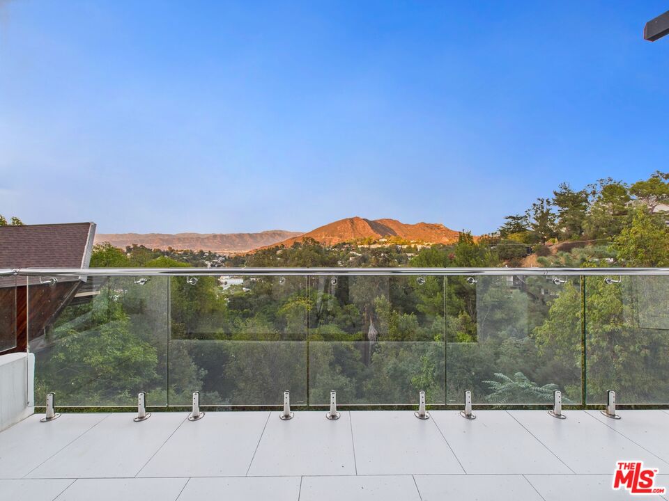 Elevated above Mulholland Drive in the Hollywood Hills, this architectural home showcases unobstructed views of the city lights, surrounding mountains, and the iconic Hollywood Sign. Designed for both relaxation and entertaining, the home features a seamless open floor plan with expansive sliding glass doors that invite natural light and breathtaking sunsets. The open-concept interiors feature a chef's kitchen with professional-grade appliances, an expansive island, and effortless flow into the living and dining spaces. The primary suite is a private sanctuary with a balcony, sitting area, custom walk-in closet, and a spa-level bath with soaking tub, glass-enclosed shower, heated floors and European finishes. Equipped with state-of-the-art Crestron smart home automation, the residence offers effortless control of automatic shades, multi-room speakers, dimmable lighting, climate, and security all from your device. For music enthusiasts, a professional-grade recording studio with full soundproofing provides the perfect environment to create and produce with ease. Additional features include fruit trees, and a reverse osmosis water system delivering purified alkaline water straight from the tap. With striking curb appeal, a beautifully landscaped front yard, a two-car garage, EV charging, and a desirable location just moments from Runyon Canyon, the Hollywood Bowl, and the Sunset Strip, this residence embodies modern luxury in one of Los Angeles' most iconic settings. Must see in person. Views and space far better than photos. Call for your tour today .