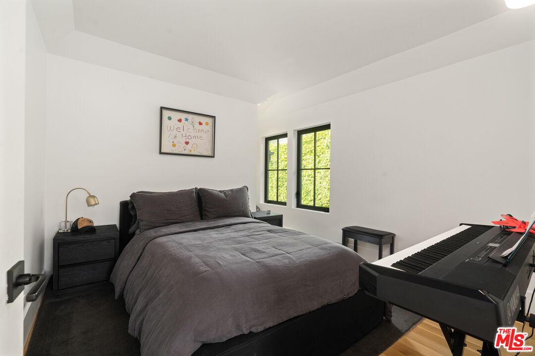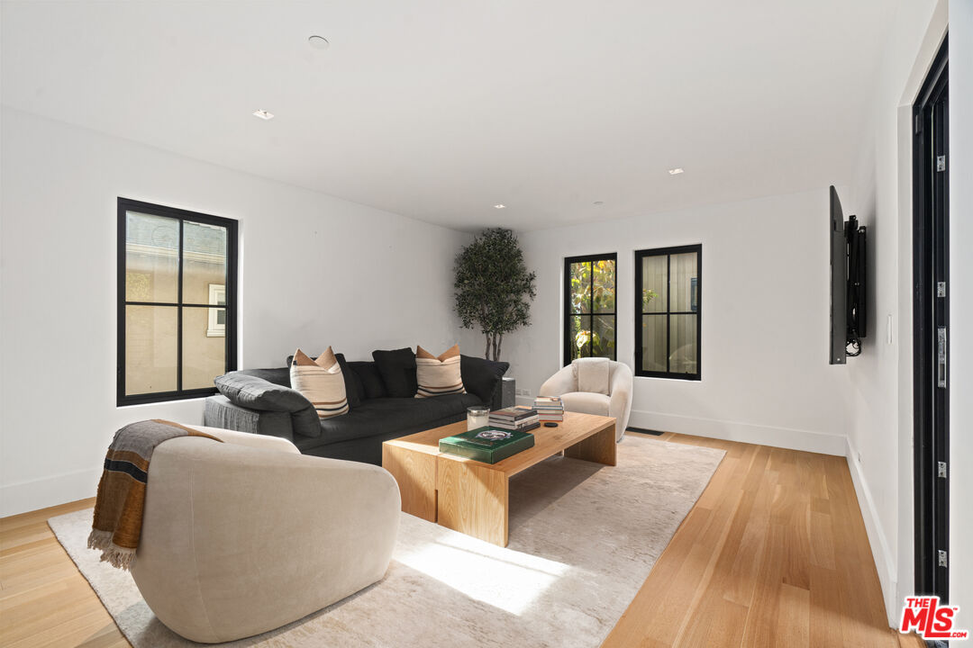 Tucked behind gates and mature hedging in the heart of Santa Monica Canyon, 719 San Lorenzo Street presents a rare opportunity to own a newly remodeled residence in one of Los Angeles' most coveted enclaves. Fully privatized with a cobblestone driveway and two car garage, the home is quietly set back to create a seclusion that is increasingly hard to find in this coastal neighborhood. Situated on a 5,500 square foot lot, the property consists of two separate addresses, with a 2,250 square foot main residence and a 700 square foot guest house. The home has been completely reimagined with new systems integrated alongside high end craftsmanship, refined finishes, and a cohesive modern barn aesthetic throughout. The main residence features four bedrooms and four bathrooms, with three bedrooms upstairs and one on the main level. Interiors are filled with natural light and thoughtfully designed to balance warmth and sophistication. The primary suite is a private retreat, featuring vaulted ceilings and custom herringbone flooring throughout. A generous walk in closet with dedicated dual sides and a spa inspired bathroom finished with statement marble, a floor to ceiling shower, and a freestanding soaking tub complete the suite. The backyard is entirely secluded and designed for seamless indoor outdoor living, featuring a built in fireplace and generous grass landscape. The detached guest house offers exceptional versatility, with 14 foot ceilings, dramatic 10 foot pocket doors, and cabinetry designed to allow the space to function as an incredible guest house or private office. This Santa Monica Canyon gem is a must see!