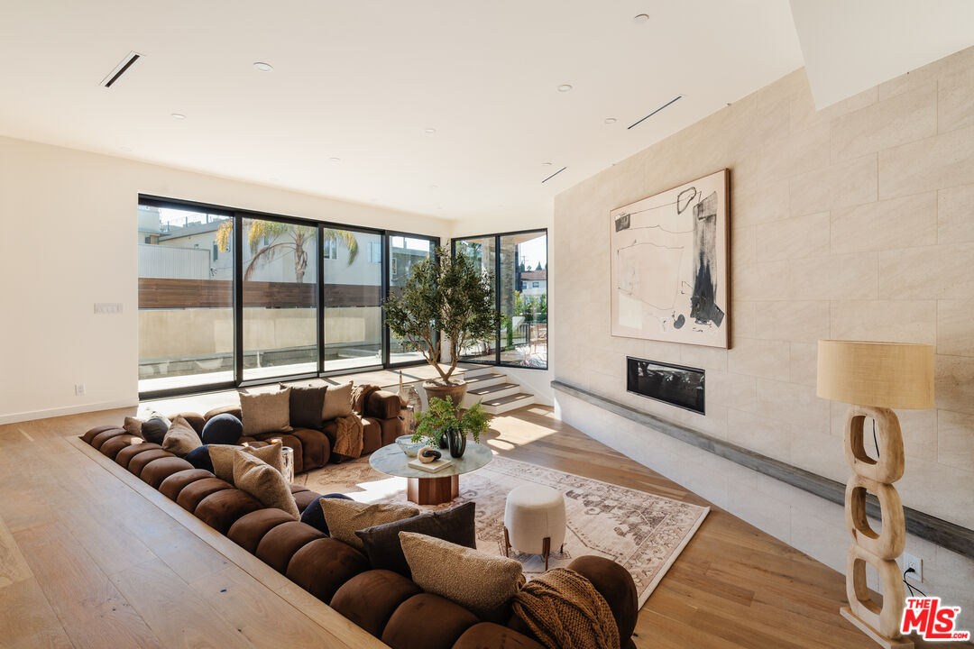 Nestled on a generous corner lot in the heart of Oxford Triangle, this 3,373 modern masterpiece rests in the peaceful pocket minutes away from the hustle and bustle of Venice, Abbot Kinney, and Marina del Rey. A grand custom pivot door opens to soaring ceilings and warm oak floors. The dramatic sunken living room, anchored by a linear gas fireplace, flows seamlessly into the dining area and chef's kitchen, which features elegant marble countertops and white oak Del Mar cabinets. A full wall of floor-to-ceiling pocket doors opens wide, fusing the entire great room with the sun-drenched pool terrace and its pool + spa, built-in outdoor kitchen, gas fire pit, and plush conversation lounge, all privately tucked behind mature palms.The main level features a glass-walled office, powder room and two-car garage with gated driveway access. Upstairs you'll find four spacious, light-filled bedrooms. The primary suite delivers hotel-level luxury with a second fireplace, sitting nook, wraparound balcony for sunset views, soaking tub, dual vanities, water closet, and large walk-in closet.Located in one of L.A.'s most desirable coastal neighborhoods, 726 Howard offers rare walkability. Stroll to the beach, cruise the bike paths and enjoy popular restaurants and shopping. Experience unbeatable charm and refined living by the sea, just minutes from the best of Marina del Rey and Venice. Don't miss out on this modern coastal gem!