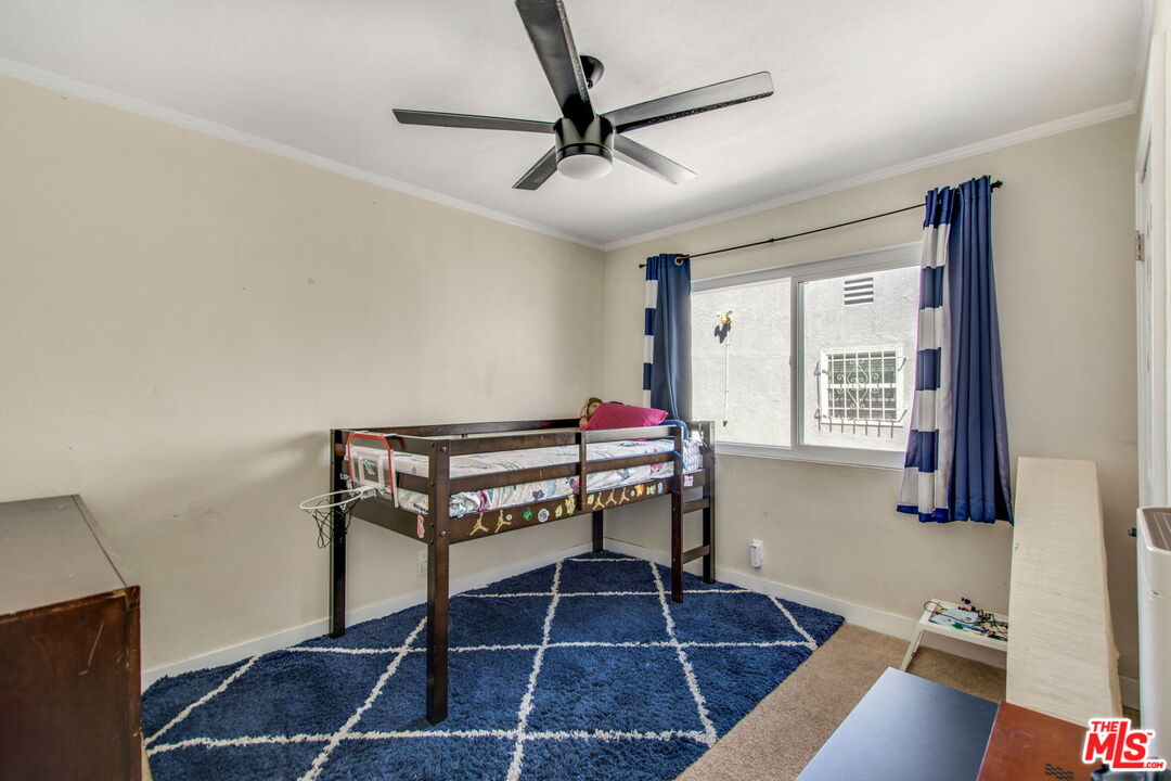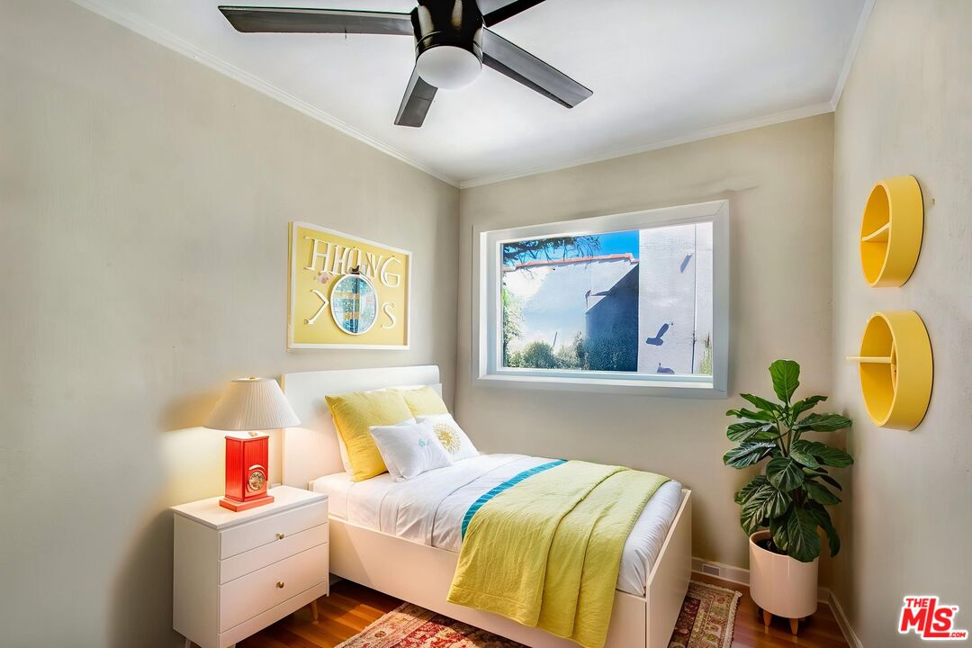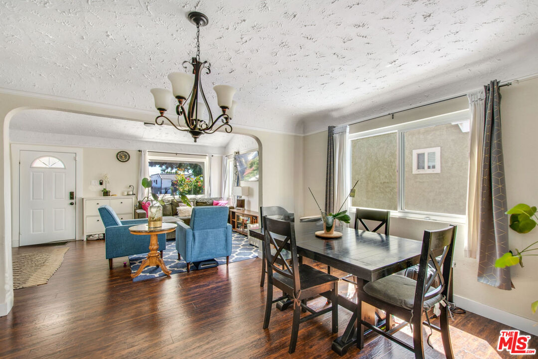 This nicely remodeled 3-bedroom, 1-bath bungalow offers charm, comfort, and a rare oversized yard in a well-established Los Angeles neighborhood all at an affordable price! . Set back from the street and framed by a white fence, the home welcomes you with an ample front yard and cozy porch. Inside, an open floor plan features vinyl plank flooring, abundant natural light through double-pane windows, and seamless flow between the spacious living and formal dining rooms perfect for entertaining or everyday living. The fully remodeled kitchen shines with stainless steel appliances, a double sink, sunny backyard views, and space for a small island and in-kitchen laundry. The primary bedroom sits at the front, while two additional bedrooms and a full bath with built-in storage complete the thoughtful layout. Step outside to a grassy backyard with a wood deck, custom playset, fruit trees and plenty of room for gardening, recreation, or even a future ADU. An added rear storage room expands functionality, while gated driveway parking provides convenience and security. With its inviting spaces, generous lot, and desirable price, this is the ideal starter home for buyers seeking both value and lifestyle in Los Angeles.