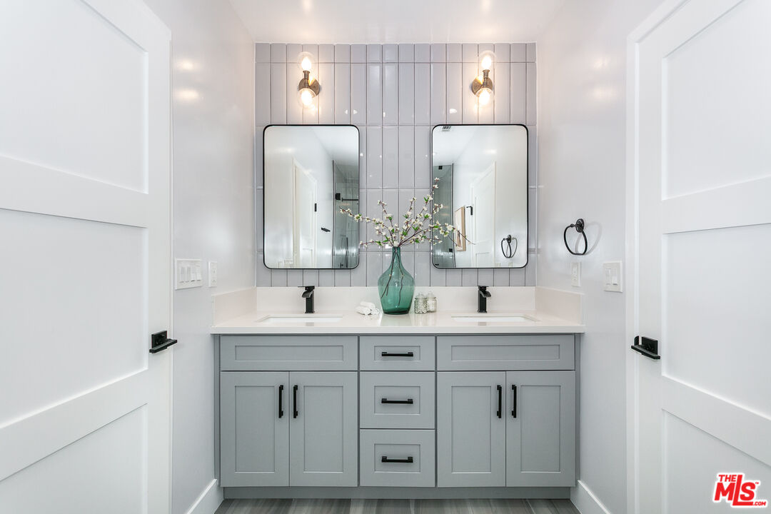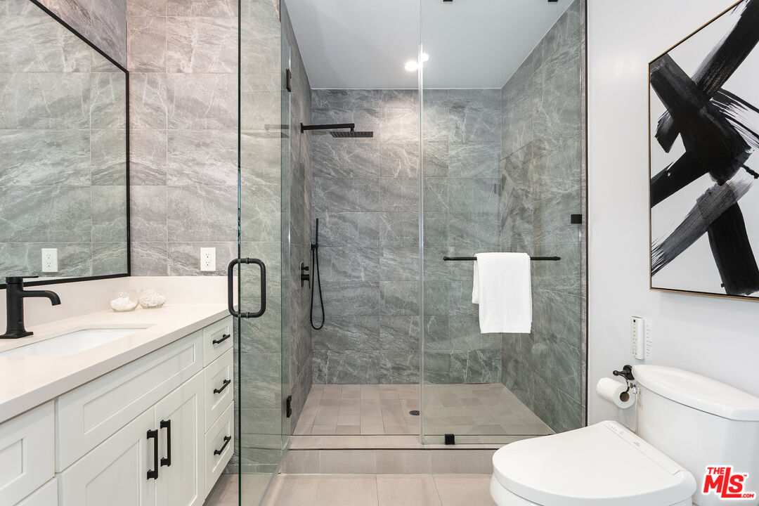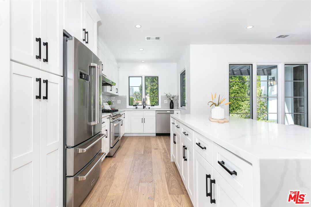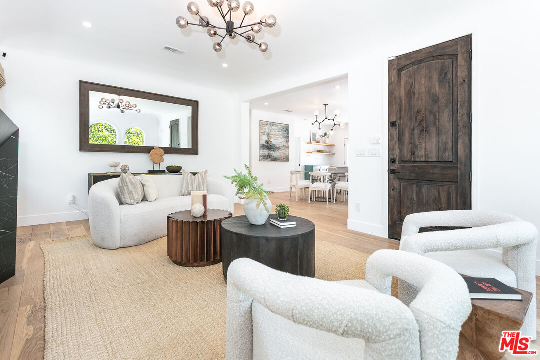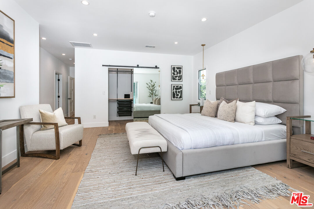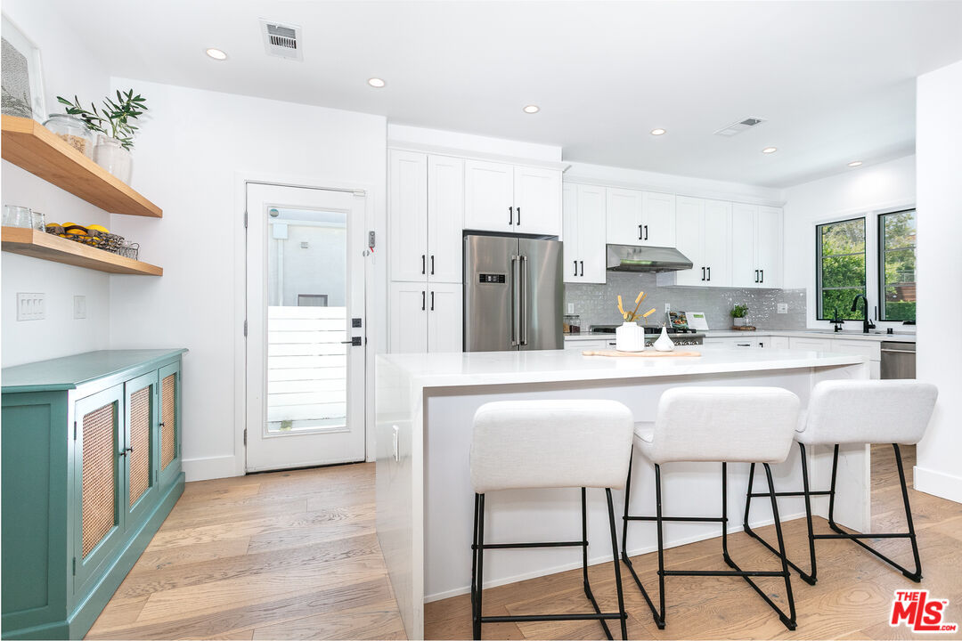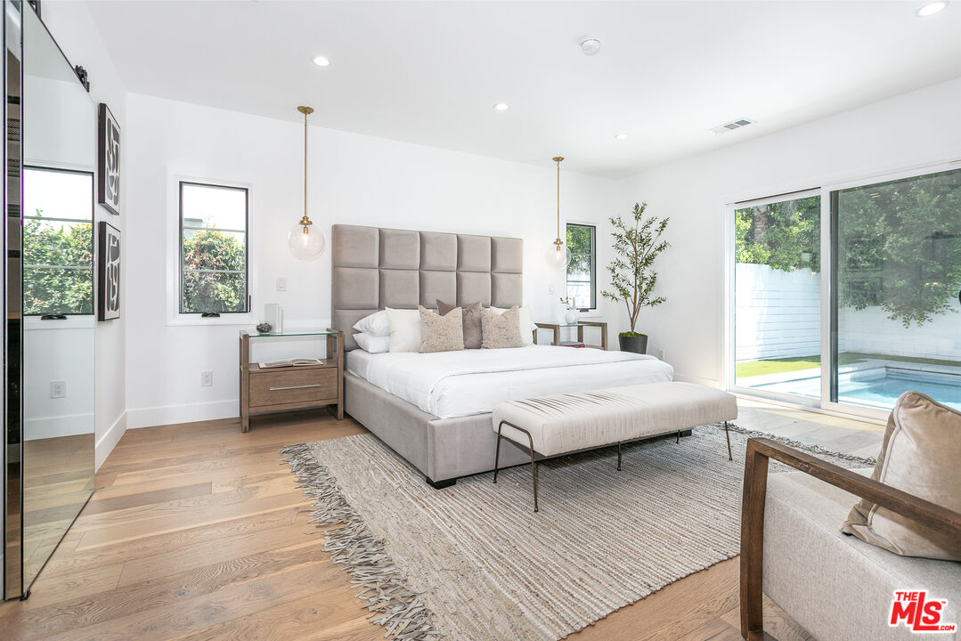 Stunning updated 5BD/4BA home with pool, ADU & privacy. Behind a gated, fully fenced driveway, this light-filled residence offers an open floor plan with high ceilings, designer finishes, and a chef's kitchen with oversized island and premium appliances. The Primary suite features a spa-like bath and two walk-in closets, while additional bedrooms provide flexibility for family, guests or home offices. A recently completed and detached ADU provides flexible space for income potential, guests, work, or family. The backyard is an entertainer's dream with a sparkling pool, Baja shelf, cabana, bbq, TV area, yard space, and outdoor shower. Recent upgrades include paid-off solar, battery backup, and natural gas generator. Centrally located near top dining, shopping, and studios.