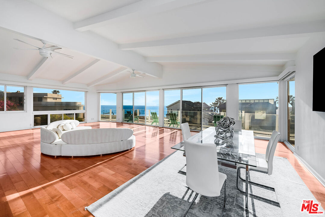This exceptional modern beach residence captures some of the most breathtaking white-water ocean views in Playa del Rey, offering the ultimate expression of coastal luxury. Spanning multiple levels, the home features 6 bedrooms and 5 bathrooms, along with a private guest suite complete with its own entrance, living room, bedroom, and bath, ideal for visitors or extended stays. The main living level is designed for both grand entertaining and relaxed everyday living, showcasing an expansive open-concept living and dining area framed by a dramatic wall of sliding glass doors that seamlessly bring the ocean indoors. Vaulted ceilings and abundant natural light enhance the space, while an elegant built-in bar adds a refined touch for entertaining. The adjacent gourmet kitchen is beautifully appointed with granite countertops, white custom cabinetry, a spacious butler's pantry, and a charming breakfast area, all complemented by stunning ocean views. This level also includes a comfortable family room and three generously sized bedrooms with well-appointed baths. A spacious laundry room with granite countertops and a sink adds convenience and functionality. The upper level is dedicated to a spectacular primary suite retreat, featuring a fireplace, walls of glass opening to a private balcony, and sweeping unobstructed ocean views. The luxurious en-suite primary bath offers double vanities, a jacuzzi tub, and additional views. On the lower level, a two-car garage with abundant storage is accompanied by a versatile bonus room and bath currently set up as a gym. With expansive living areas, seamless indoor-outdoor flow, and extraordinary coastal vistas throughout, the residence presents a rare opportunity to reimagine and elevate a home of this scale and setting into a truly exceptional coastal retreat.