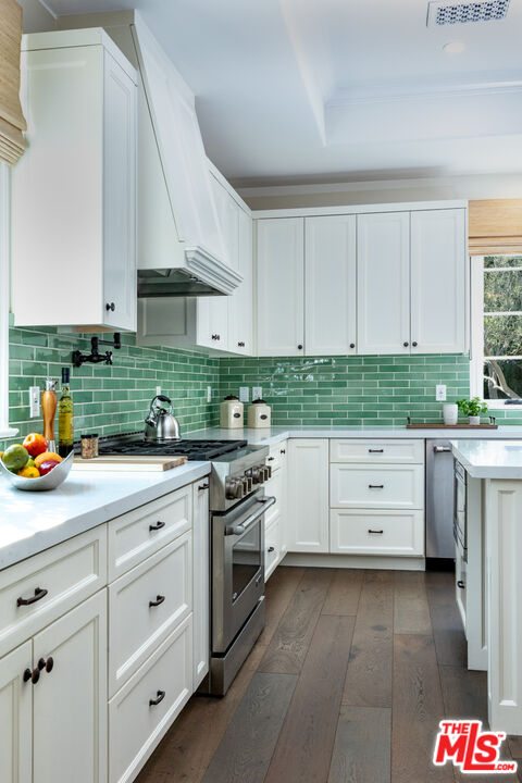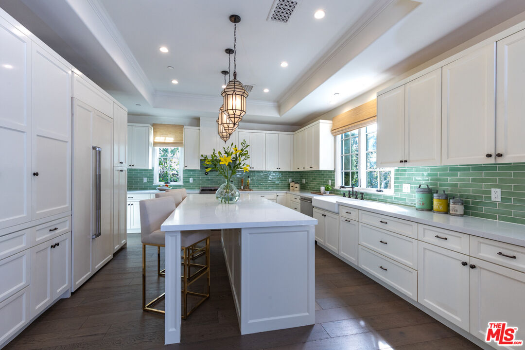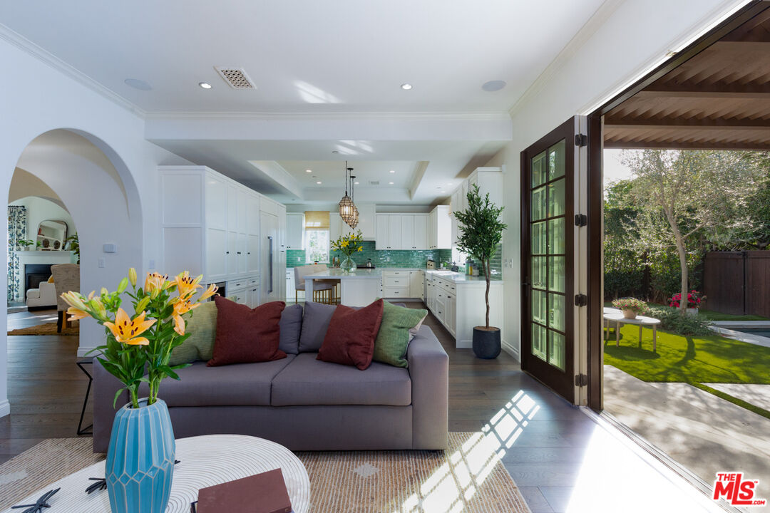 Discover the elegance of modern living at 735 North Stanley Avenue, Los Angeles an exquisite Spanish-style residence that artfully combines timeless charm with contemporary luxury. With 3,145 square feet of thoughtfully designed living space, this home features four spacious bedrooms and four-and-a-half lavish bathrooms, offering abundant space for relaxation and entertaining.Step inside to find a formal living room accentuated by a custom fireplace, setting a warm and inviting tone. The chef's kitchen is a culinary dream, complete with custom cabinetry, top-of-the-line stainless steel appliances, and an island perfect for casual dining. The expansive family room seamlessly blends indoor and outdoor living, opening onto a private backyard oasis. Enjoy a heated salt water and spa, complemented by a built-in barbecue ideal for Southern California's al fresco dining. Retreat to the master suite, where luxury abounds with a private balcony, cozy fireplace, and a walk-in closet. The en-suite bathroom is a sanctuary of its own, featuring a soaking tub and dual vanity. Additional highlights include a two-car garage, pristine hardwood floors, and designer light fixtures throughout. Experience the perfect blend of sophistication and comfort at this prime Los Angeles address.