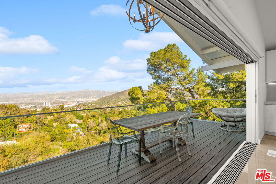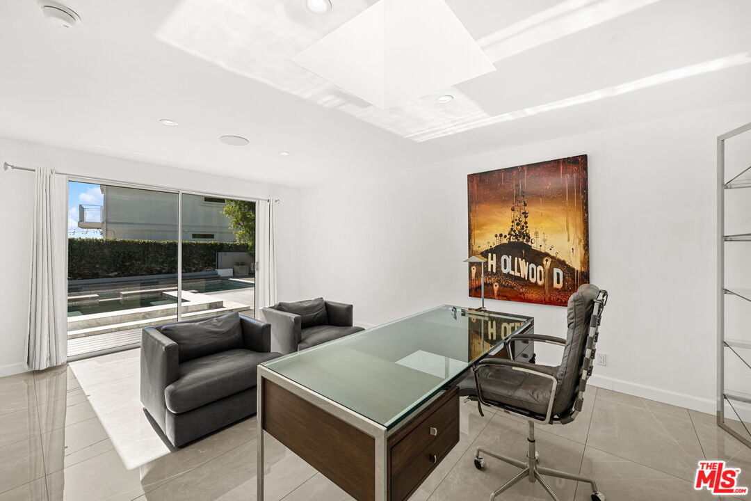 Stylish elegance meets breathtaking panoramic views, creating a true floating-above-the-city experience. This refined residence blends sophisticated design with open architectural flow and seamless indoor-outdoor connectivity, capturing sweeping vistas throughout while offering a private retreat crafted for elevated Los Angeles living. The home features 4 bedrooms, three located on the lower level, and one on the main level currently configured as an office along with a spacious loft/flex space suitable for guests or media use (not counted as a fifth bedroom). Additional amenities include a private screening room and a garage area configured for gym or wellness use. Sonos sound system throughout. The main living level showcases the home's most impressive vantage points, highlighted by expansive dual-pane windows and dramatic multi-panel Fleetwood sliding glass doors opening accordion-style to panoramic scenery. An open chef's kitchen flows seamlessly into the living area anchored by a statement fireplace and striking designer lighting, creating an inviting setting for entertaining.Kitchen features include Gaggenau appliances, marble countertops, and generous preparation space, connecting naturally to the dining area, glass-enclosed balconies, and outdoor gathering areas surrounding the pool, spa, and BBQ entertaining space. On the lower level, the primary suite enjoys sliding glass doors framing scenic views, complemented by custom walk-in closets and a spa-inspired bath featuring dual vanities, soaking tub, and separate shower. Two additional bedrooms share this level along with a third bathroom and laundry area. Designer finishes include marble accents, marble and hardwood flooring, and a carpeted theatre room with projection setup. Outdoor living is enhanced by private access steps leading directly to Runyon Canyon trail access, while maintaining close proximity to Sunset Boulevard, Laurel Canyon and Mulholland Drive. Sophisticated and thoughtfully designed, this residence delivers luxury, privacy, and layered view experiences across multiple levels.