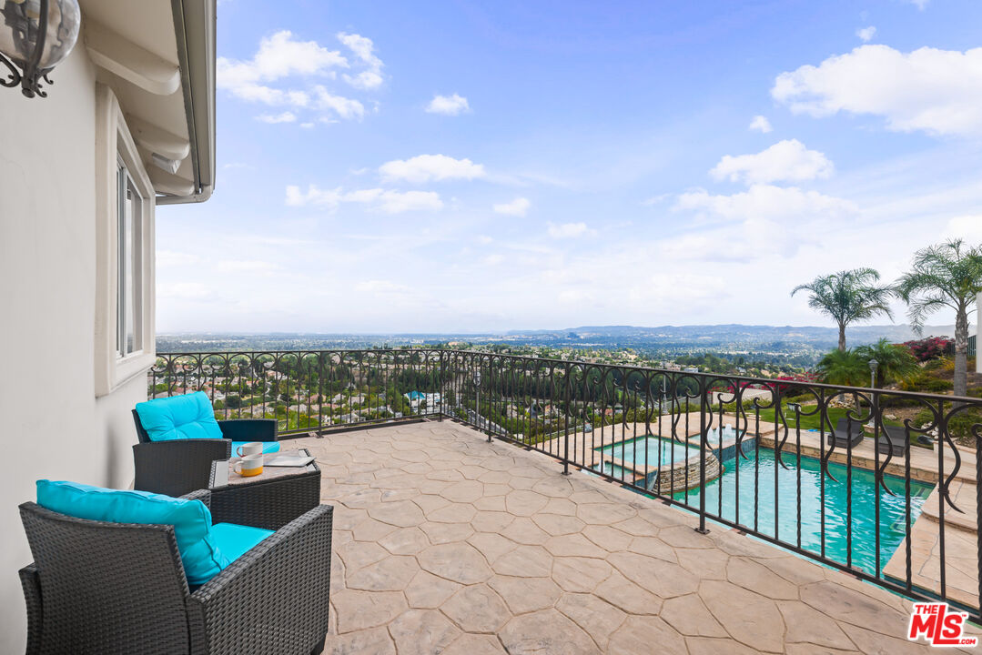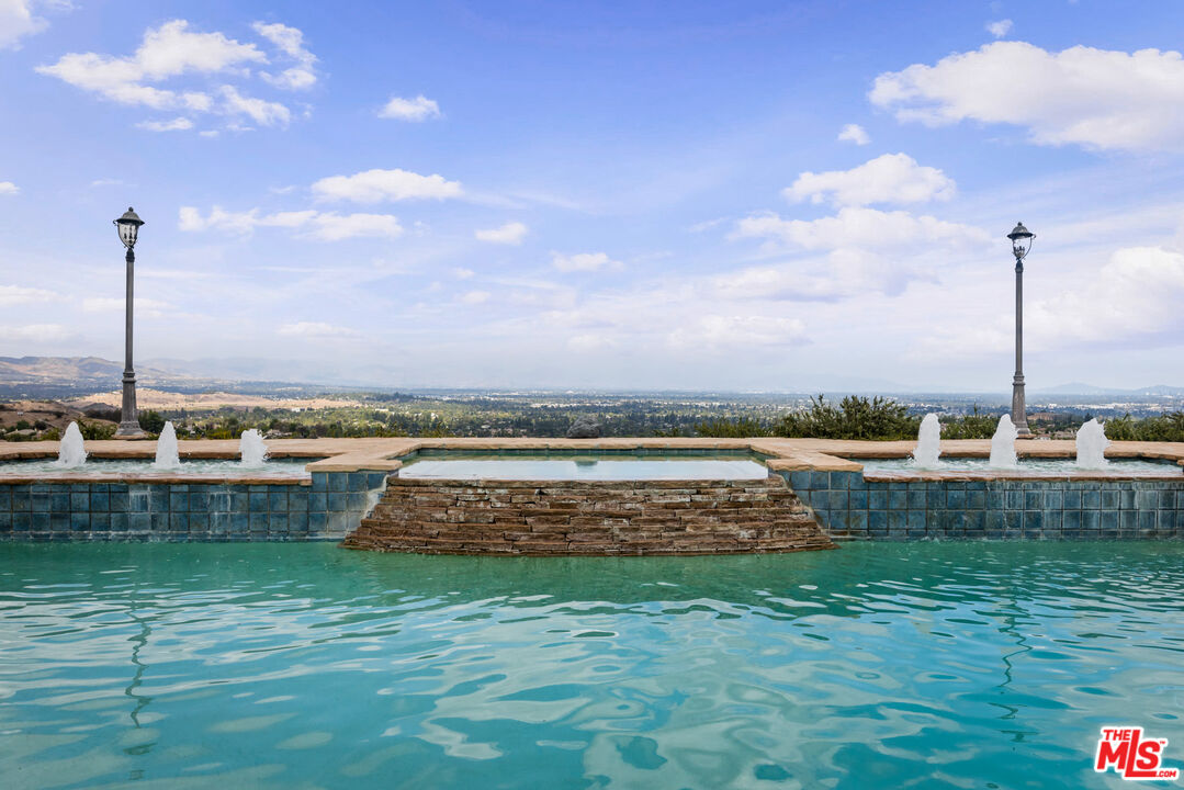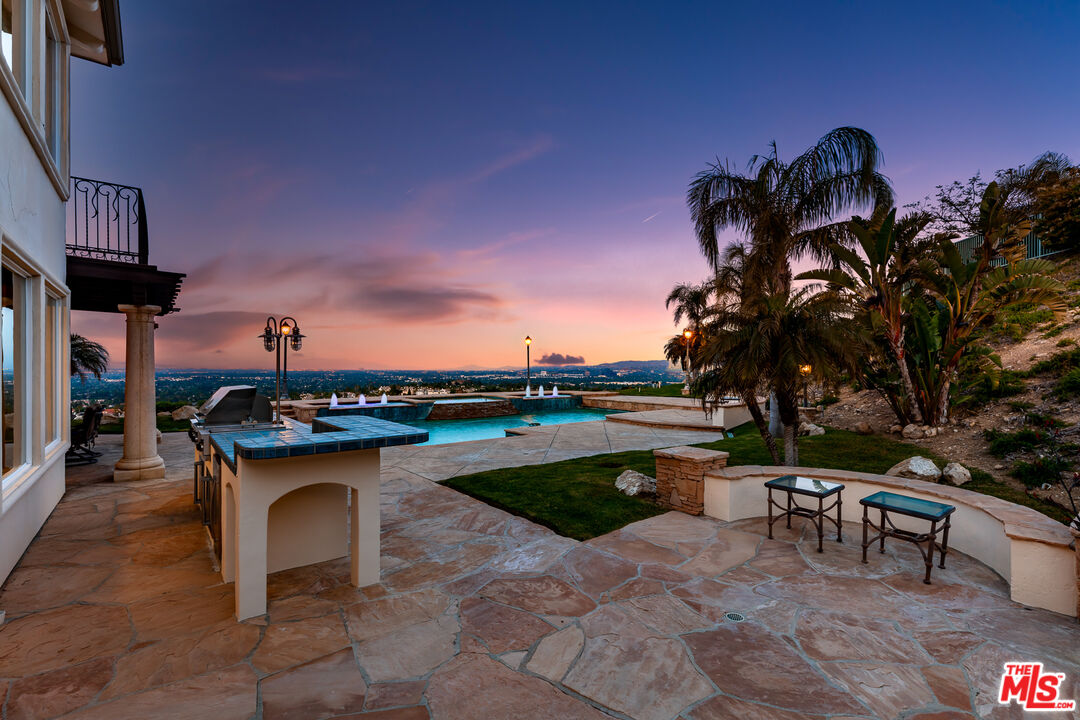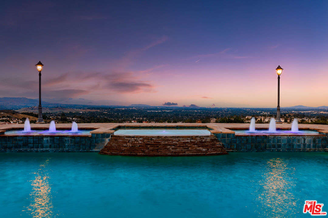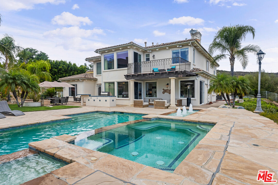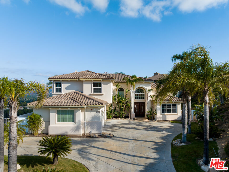 Explosive Views! Welcome to 7416 Wiscasset Drive, a Tuscan-inspired masterpiece nestled in the exclusive Stonegate community of West Hills, but NOT in the restrictive HOA. This private trophy estate, freshly reimagined inside and out, offers the perfect blend of European elegance, California luxury, and modern functionality. Set on over 2 acres of serenity, this 5-bedroom, 4.5-bath residence with an additional dedicated office spans approximately 4,200 square feet of refined living space. The home has been freshly painted throughout, with new carpets on the stairs and upper level, creating a move-in-ready canvas for its next discerning owner. The resort-style backyard is a true showpiece, complete with a custom pool and spa, mesmerizing waterfalls, and panoramic views stretching from the San Gabriel Mountains to the Santa Monica Mountains. It's the ideal setting for unforgettable gatherings or quiet evenings under the stars. With room to add an ADU or guest retreat on the lower hillside, the property offers both luxury and long-term flexibility. Inside, natural light floods the open floor plan, illuminating hardwood floors, arched passageways, and a gourmet center-island kitchen that seamlessly connects to the inviting family room. Every room frames a view: mountains by day, city lights by night, creating a sense of effortless indoor-outdoor living. The primary suite is a private sanctuary with a fireplace, lounge area, walk-in closet, and balcony with jetliner views. Its spa-inspired bathroom features a soaking tub, glass shower, and dual vanities, an indulgent retreat to begin and end each day. Sustainability meets sophistication with a 54-panel owned solar system, delivering energy efficiency without compromise. The property has also generated rental income, adding value and versatility rarely found at this level. With no HOA dues, proximity to top-rated schools, and unmatched privacy, this Stonegate estate represents the pinnacle of West Hills luxury living - where timeless architecture, modern upgrades, and breathtaking vistas come together in perfect harmony. This is the one.