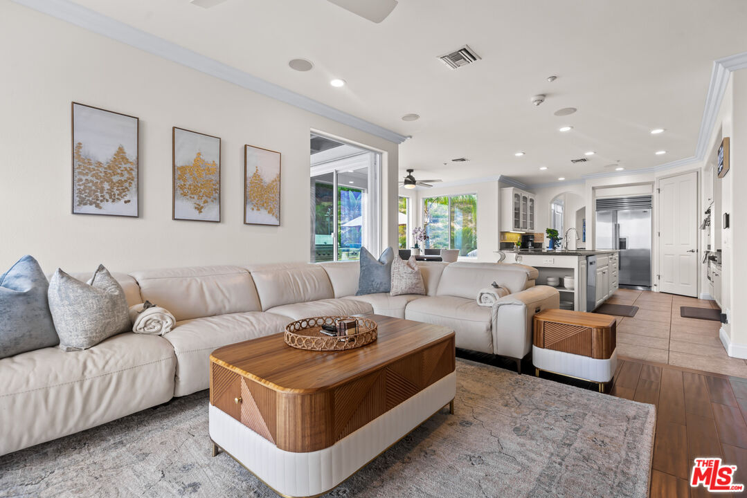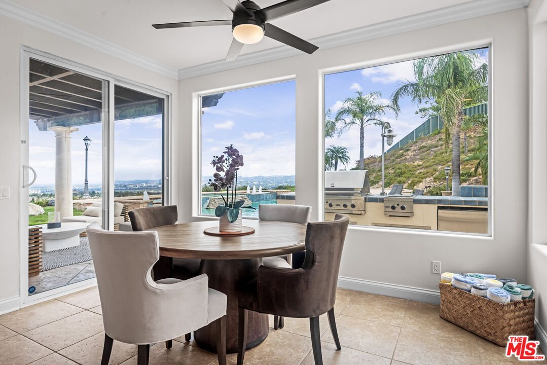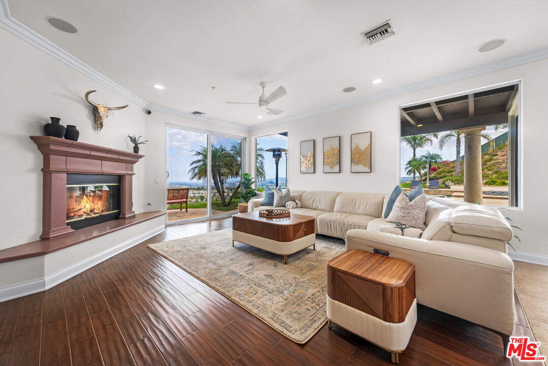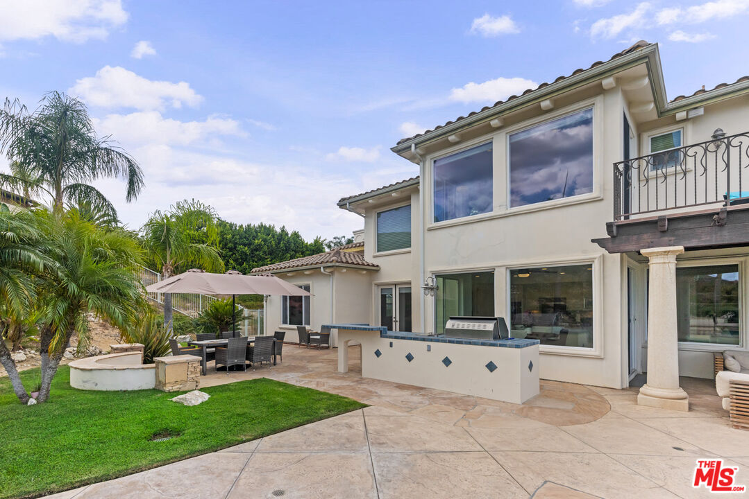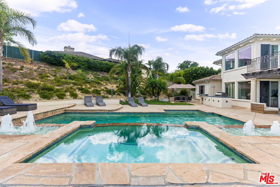 Explosive Views! Welcome to 7416 Wiscasset Drive, a Tuscan-inspired masterpiece nestled in the exclusive Stonegate community of West Hills, but NOT in the restrictive HOA. This private trophy estate, freshly reimagined inside and out, offers the perfect blend of European elegance, California luxury, and modern functionality. Set on over 2 acres of serenity, this 5-bedroom, 4.5-bath residence with an additional dedicated office spans approximately 4,200 square feet of refined living space. The home has been freshly painted throughout, with new carpets on the stairs and upper level, creating a move-in-ready canvas for its next discerning owner. The resort-style backyard is a true showpiece, complete with a custom pool and spa, mesmerizing waterfalls, and panoramic views stretching from the San Gabriel Mountains to the Santa Monica Mountains. It's the ideal setting for unforgettable gatherings or quiet evenings under the stars. With room to add an ADU or guest retreat on the lower hillside, the property offers both luxury and long-term flexibility. Inside, natural light floods the open floor plan, illuminating hardwood floors, arched passageways, and a gourmet center-island kitchen that seamlessly connects to the inviting family room. Every room frames a view: mountains by day, city lights by night, creating a sense of effortless indoor-outdoor living. The primary suite is a private sanctuary with a fireplace, lounge area, walk-in closet, and balcony with jetliner views. Its spa-inspired bathroom features a soaking tub, glass shower, and dual vanities, an indulgent retreat to begin and end each day. Sustainability meets sophistication with a 54-panel owned solar system, delivering energy efficiency without compromise. The property has also generated rental income, adding value and versatility rarely found at this level. With no HOA dues, proximity to top-rated schools, and unmatched privacy, this Stonegate estate represents the pinnacle of West Hills luxury living - where timeless architecture, modern upgrades, and breathtaking vistas come together in perfect harmony. This is the one.