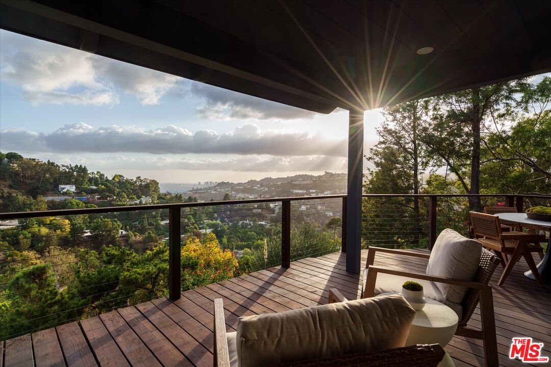 Tucked along a coveted cul-de-sac off Mulholland, 7420 Cervantes Place opens to sweeping canyon and city views from the moment you enter. Floor-to-ceiling windows and an open-concept layout frame these vistas throughout the main living areas, flowing into a chef's kitchen designed for both everyday living and entertaining. A second living level opens directly to the yard and spa terrace, offering a spacious and versatile lounge with seamless indoor-outdoor access.Two flat grassy yards and a canyon-facing spa to soak in this exceptional outdoor retreat for the Hollywood Hills. Renovated in 2024, the home blends modern finishes with warmth and ease. The primary suite features a spa-style bath and custom walk-in closet. Located minutes from Runyon Canyon trailheads, West Hollywood dining/nightlife, and Studio City amenities, this home truly balances privacy, design, and breathtaking views.