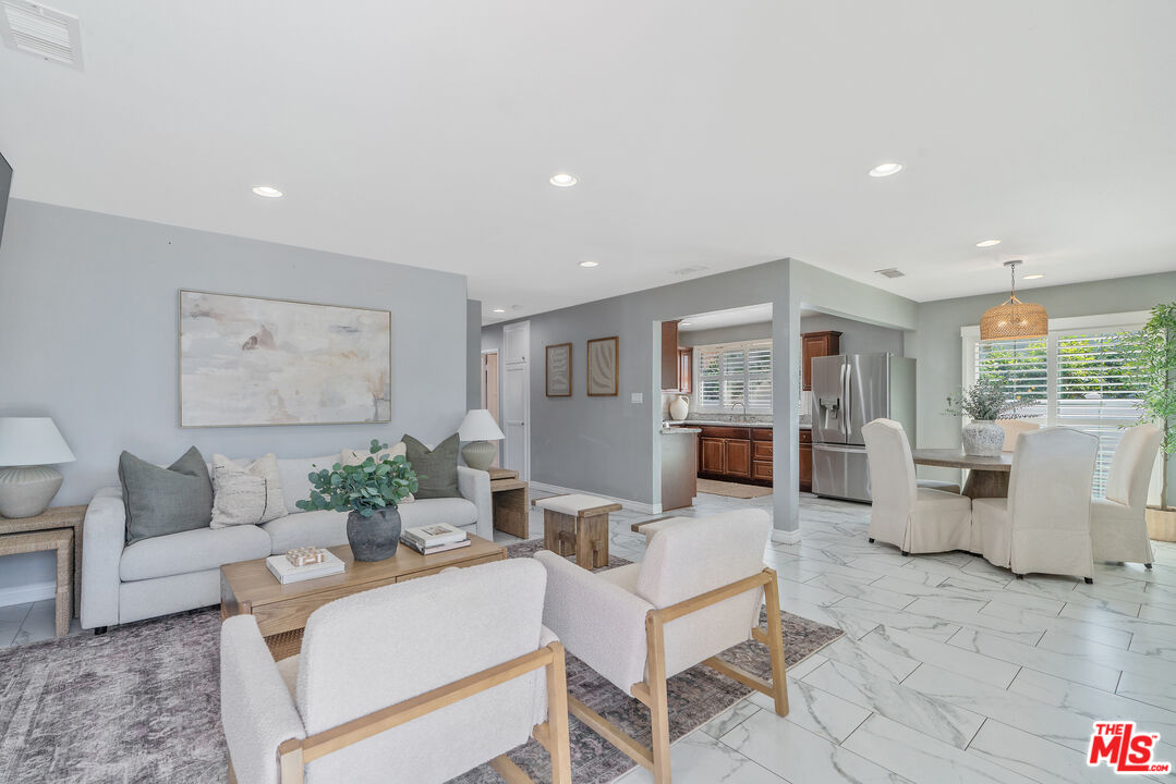 Welcome to this upgraded gated home located on a quiet, tree-lined street in one of Winnetka's most desirable neighborhoods. This light-filled residence features an open floor plan designed for comfortable living and easy entertaining, highlighted by custom shutters and abundant natural light throughout. Situated on a generous nearly 7,000 square foot lot, the property offers exceptional outdoor space with multiple patios perfect for gatherings and relaxation. The expansive backyard includes a thriving garden with sugarcane, vegetables, and more, creating a unique outdoor retreat for gardening enthusiasts and entertainers alike. A standout feature of the property is the massive detached structure at the rear of the lot, offering incredible flexibility for a workshop, studio, storage, or potential ADU possibilities. The large gated side driveway provides ample parking and is spacious enough for RV access. Recent upgrades include a newer roof, updated flooring, a remodeled kitchen, numerous dual-pane windows, and many additional improvements that enhance both comfort and efficiency. This rare property combines privacy, space, and versatility in a fantastic Winnetka location close to parks, shopping, and dining.