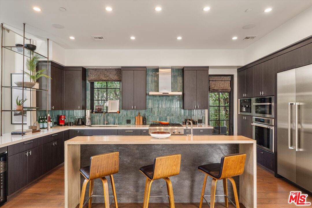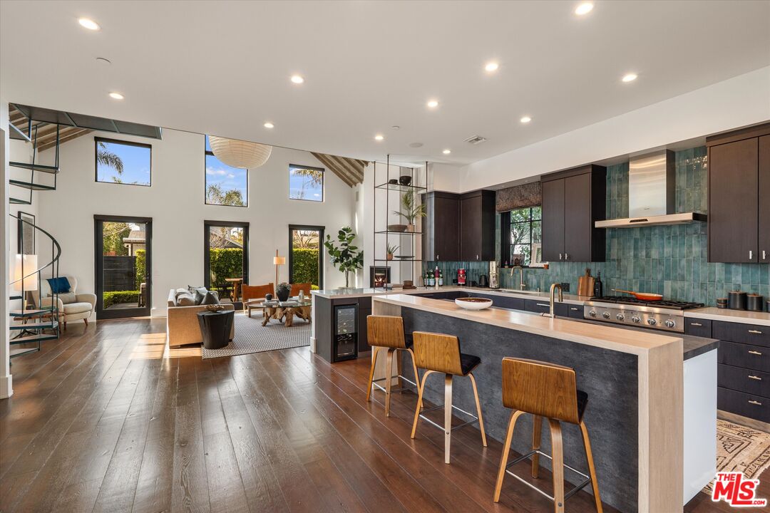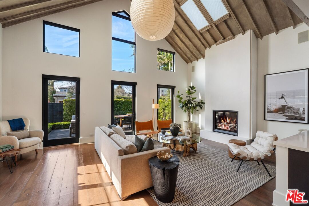 Step into an unparalleled living experience in this one-of-a-kind "Venice Gem" meticulously designed with attention to detail. From the aged Wyoming Snow Fencing to the soaring wood-beamed ceilings, every inch of this estate reflects master-class craftsmanship and sophisticated style. 3 spacious ensuite bedrooms, a built-in workspace, a tranquil yoga loft, and a Chef's Open kitchen concept with large island, Miele Coffee Machine and Miele Steam and Convection ovens. The grand living room features a 25' vaulted wood beamed ceiling a Venetian plastered fireplace, and a spacious front deck with abundant natural light. Floor-to-ceiling Fleetwood sliders grace the open dining area, leading to a beautifully landscaped patio with a concrete firepit - perfect for entertaining. The Primary suite is a private oasis featuring its own fireplace, a massive custom closet, and a spa-like bathroom with an aromatherapy freestanding tub and walk-in shower. Enjoy quiet mornings on your own private deck. Notable updates include Custom curtains throughout the home with new remote control blinds on the living windows, with retractable blinds installed on the living room skylights. All lighting in the home has been replaced with programable custom fixtures. Full Sonos stereo "in ceiling" hardwired speakers throughout the entire house. The exterior has a new front gate locking system with security intercom and full property security cameras and upgraded home monitoring system and private hedging, creating a private, secure and serene oasis. With 5-car parking, including a bonus bedroom/ADU with kitchen and bath over the 3-car garage, this property offers both luxury and privacy. Plus, its unbeatable location; the "Best Block in Venice, " just a block from Abbot Kinney and a short stroll to the beach, makes it a dream for even the most discerning clientele. Don't miss out on this rare opportunity!