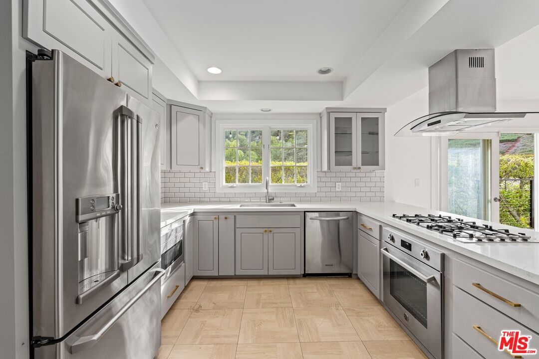 Your search for that perfect lower Nichols Canyon hideaway ends right here on Devista Drive where you will enjoy serene canyon views, great natural light and outdoor space for every time of day. Recently remodeled featuring 3 bedrooms (two with private balconies), 3 baths, a living and dining room that both open to the back patio, and a cook's kitchen designed for any level cook with ample counter space where you can easily entertain on any scale. Great storage and a direct entry garage. Designer details include high-end fixtures, custom cabinetry, French doors. Outdoor entertaining spaces include a large open patio surrounded by mature trees, a hot tub and custom gas fire-pit creating your own private oasis. Primary bedroom features a rolling barn door and picturesque balcony and a spa-like bathroom with dual sinks, soaking tub, and rainfall glass shower. This is quintessential Southern California living at its best you won't want to leave home. Close to Beverly Hills, Runyon Canyon, the Grove and World Famous Sunset Strip.
