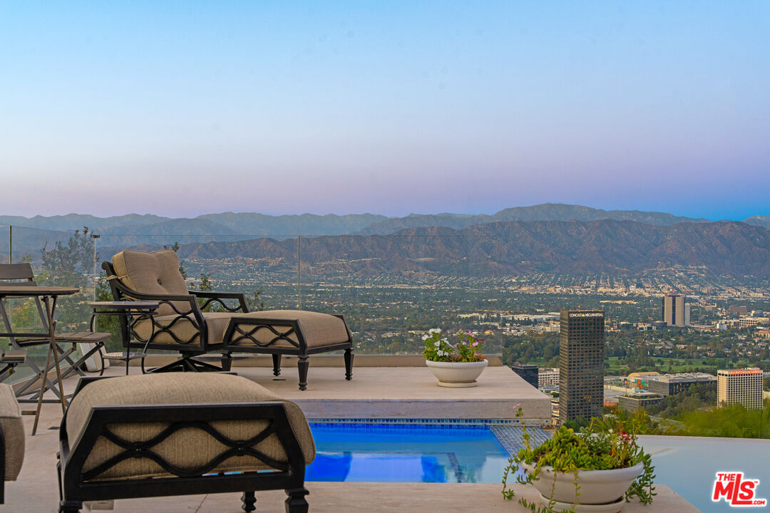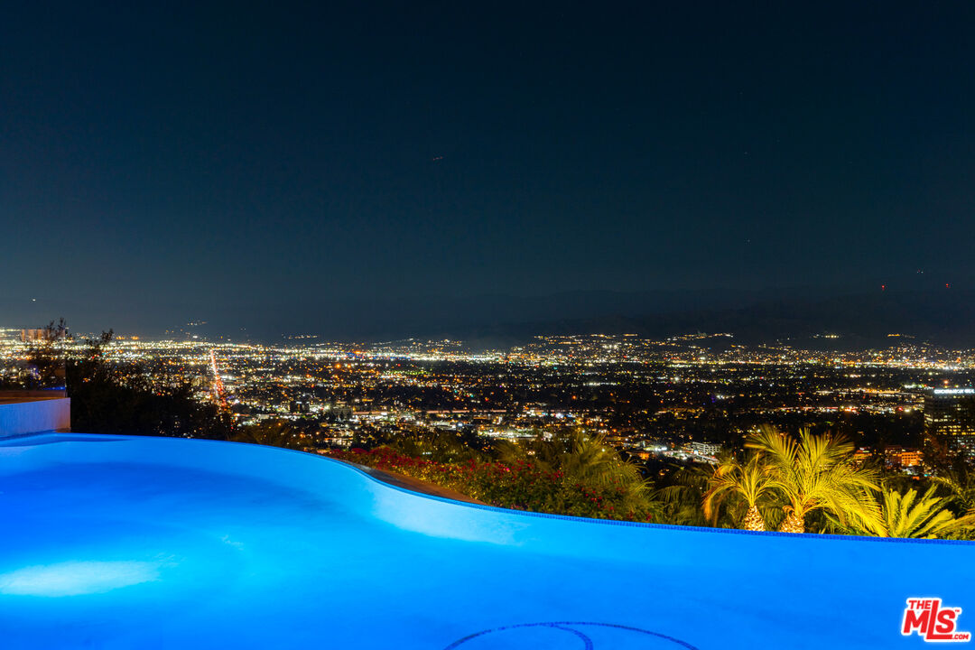 Welcome to "Villa De Torreyson", a breathtaking Mediterranean masterpiece perched high above the Hollywood Hills on one of the most prestigious celebrity-studded cul-de-sacs in Hollywood Hills West. This timeless villa captures inarguably the most awe-inspiring, unobstructed panoramic views in the entire region sweeping from the Santa Monica Mountains and Universal Studios to the vast San Fernando Valley skyline and mountain ranges. With a commanding promontory position and cinematic sunrises and sunsets, this is a rare offering for those who demand the extraordinary. Beyond its stately motor court and dramatic two-story entry, the residence unfolds into a series of radiant, light-filled living spaces that embody the elegance of Old World Mediterranean charm fused with refined California luxury. The formal living room flows effortlessly into the dining room, breakfast nook, and a spacious chef's kitchen, creating the perfect atmosphere for both grand-scale entertaining and intimate everyday living. Step outside to a resort-inspired oasis where an architectural infinity pool floats above the city, framed by lush landscaping, multiple lounging terraces, and a built-in BBQ pavilion, all oriented to capture the home's world-class views at every turn. The primary suite is a sanctuary unto itself, featuring a cozy sitting area with fireplace, dual walk-in closets, and a private wraparound balcony that spills directly into the horizon. A spa-like bath with soaking tub and oversized glass shower completes the retreat with a sense of calm sophistication. Additional highlights include a state-of-the-art home theater with projection system and surround sound, a bonus room with private entrance ideal for a gym, office, recording studio, meditation/yoga area, or creative studio, a three-car garage, and five luxurious en-suite bedrooms. With effortless access to the Sunset Strip, Beverly Hills, and Studio City, "Villa De Torreyson" is more than a home, it is a rarefied hilltop estate that defines prestige, privacy, and iconic Los Angeles living. Truly one of the best views in all of Hollywood Hills West.