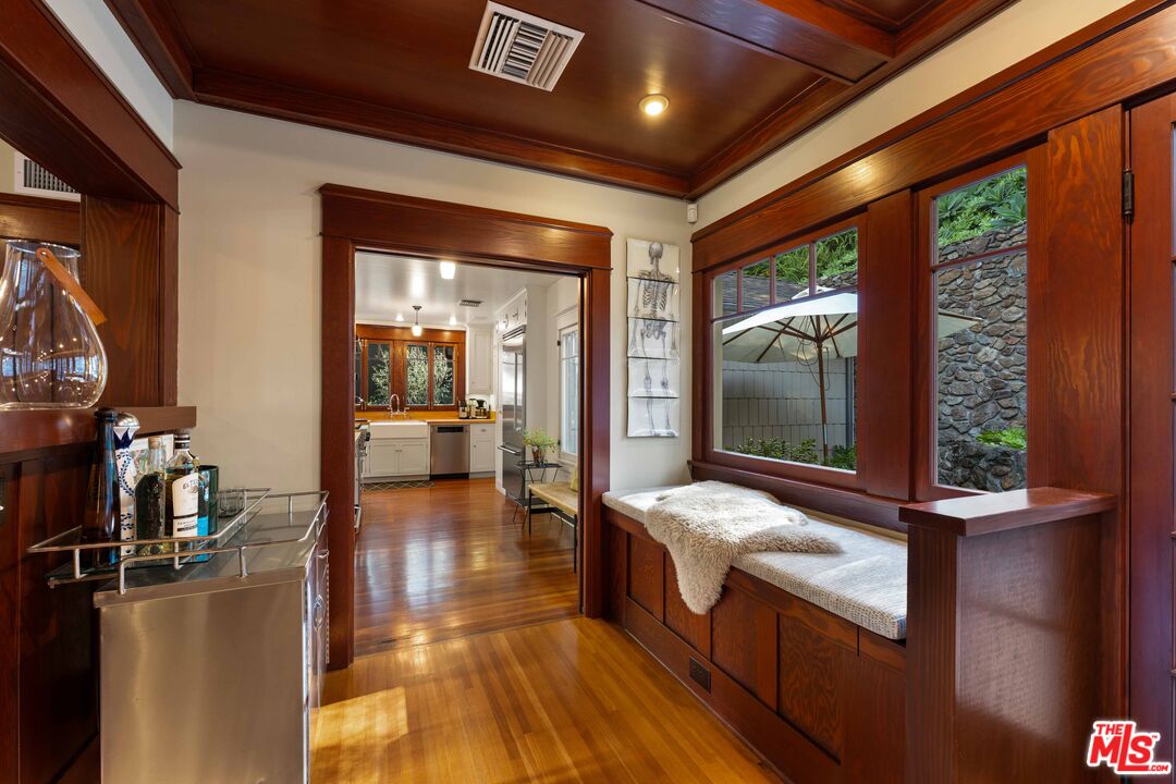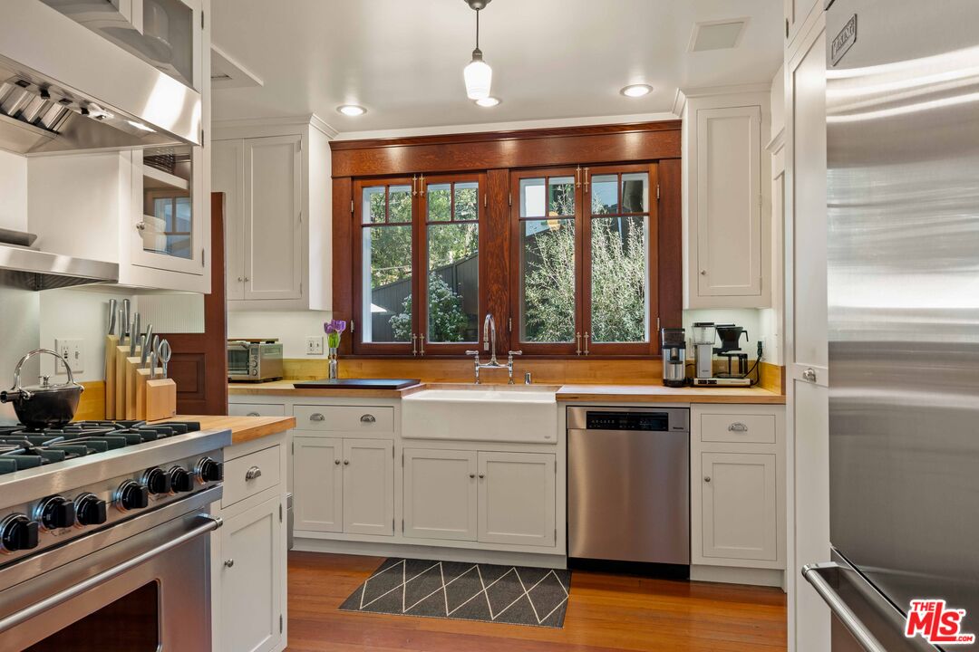 Step through the gate and into a piece of 1914 history. Thoughtfully refreshed for life today. This 3 bedroom, 2 bath treasure (plus a charming office with its original Murphy bed could be used as 4th bedroom) blends heirloom character with modern comfort. Sun-washed living spaces showcase quarter-sawn oak and pine floors, period moldings, and built-in cabinetry. A cook's kitchen pairs Viking and Miele appliances with butcher-block counters perfect for Sunday pancakes or spirited dinner parties. Custom windows invite canyon breezes while a whole-house sound system sets the mood in every room. The primary bathroom features Waterworks fixtures, and Walker Zanger tile creating a lavish retreat. Updated HVAC, plumbing, and more ensure worry-free living for years to come. Out back, leafy serenity surrounds inviting patios offering a creative sanctuary just minutes from Hollywood, the studios, and Beverly Hills. In the coveted Wonderland School District, this lovingly restored Craftsman is a one-of-a-kind alternative to today's "cookie-cutter" offerings. They simply don't make them like this anymore so come see why.