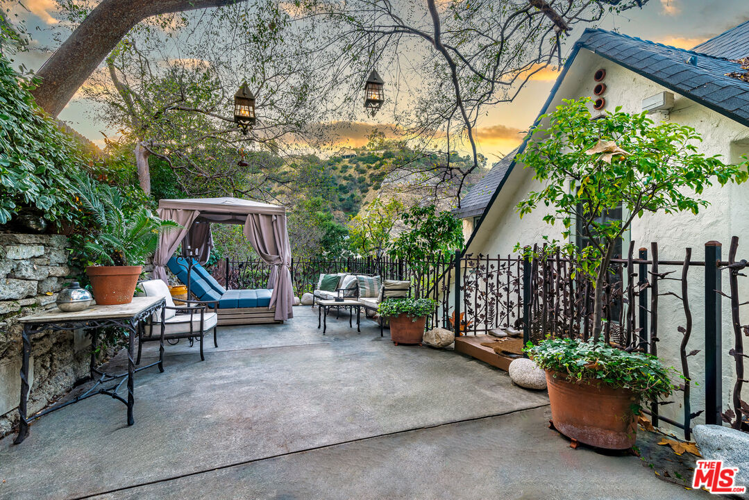 Standing guard over a private enclave of Mt Olympus, this 1926 Spanish storybook should best be described as a romantic love affair with life. Born in an era when silents were turning into talkies, this is the home that will write your next chapter and allow your inspiration to flow. Rich with rockstar history and filled with classical elements like wood-beamed cathedral ceilings, stained glass windows, a mantled fireplace, a fabulous octagon shaped library, lush greenery yards and outdoor dining areas with balconies on every level of the house. The kitchen, made to inspire your culinary efforts, connects to a formal dining room with an ambiance to entertain, fulfilling every expectation of a perfect night at home with friends. Cross the lovers bridge and you know, you've found your place to come home to.
