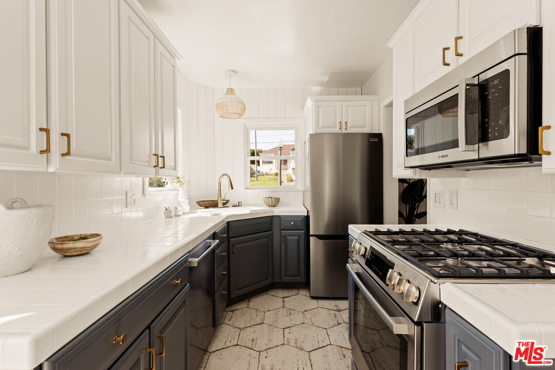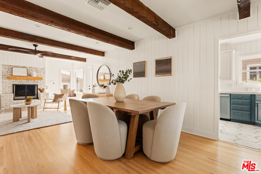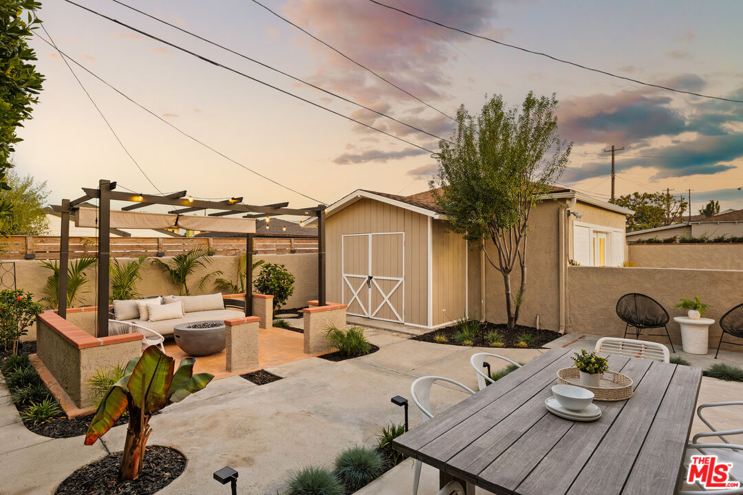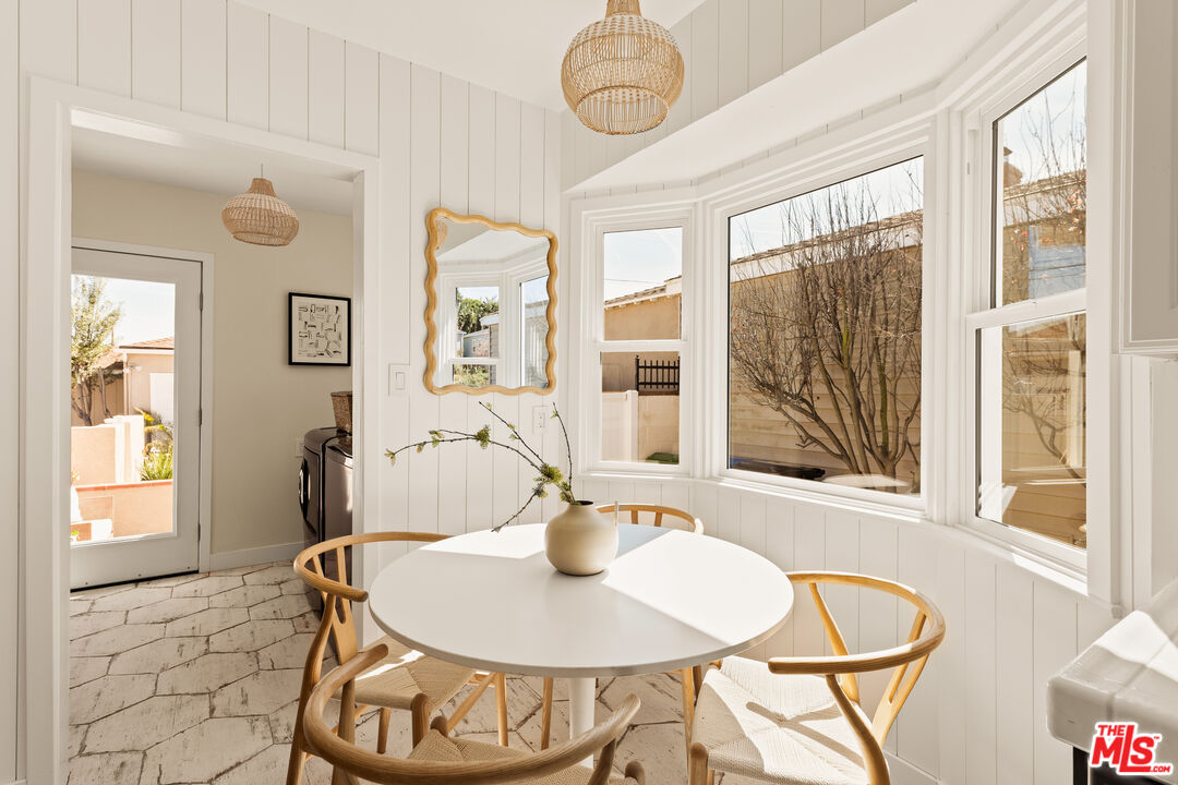 Welcome to a rare opportunity in Westchester's Westport Heights: a meticulously renovated 3-bedroom, 2-bathroom single-story home, available for the first time in 50 years. This 1,752 sq ft residence masterfully blends vintage beach cottage charm with modern luxury, showcasing original ornate architectural details by Silas Nowell.The thoughtfully designed floor plan offers privacy with bedrooms on one side and expansive living areas on the other. Dual living spaces, each featuring a wood-burning fireplace with gas starter, provide versatile comfort. The formal living room boasts a coved ceiling and bay window, while the great room integrates family living and dining, highlighted by a limewashed brick fireplace and a stylish dry bar with quartz countertop. Dark wood ceiling beams and white wall paneling create a striking beachy aesthetic. Culinary enthusiasts will appreciate the renovated galley kitchen, equipped with premium Bosch appliances, vertical shiplap walls, and champagne bronze hardware. Abundant natural light fills the space, which includes an eat-in seating area and Spanish-crafted hex tile flooring that extends into the spacious laundry room with new GE Profile appliances. The luxurious private quarters include a primary bedroom positioned at the rear for tranquility, featuring a full-light patio door leading to a secluded outdoor sanctuary. Two generously sized secondary bedrooms offer comfort and privacy.Outdoor living is perfected in the professionally landscaped backyard, featuring tropical foliage and nightscaping. Two distinct patios offer diverse entertainment options: one with a charming shed, pergola, and spill fountain, and the other, accessible from the kitchen, equipped with utilities for a potential outdoor kitchen. Adding significant value is the beautifully finished 323 sq ft garage, offering exceptional versatility as an office, home gym, or with strong potential for ADU conversion ideal for rental income or multi-generational living. Recent upgrades include a new shingle roof, Bryant furnace and ductwork, 200-amp electrical panel, updated appliances, and many newly installed Milgard windows, ensuring modern comfort without sacrificing character. Enjoy an enviable location in one of Los Angeles' most convenient neighborhoods. Just 10 minutes from pristine beaches and 3 miles from LAX, this home is ideally situated near Silicon Beach, Playa Vista, and LMU. This prime location offers a vibrant tapestry of dining, shopping, and entertainment, balancing residential serenity with urban convenience. This isn't just a home; it's a lifestyle opportunity and a smart investment in a highly desirable area.