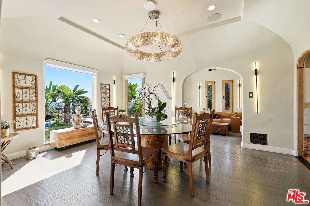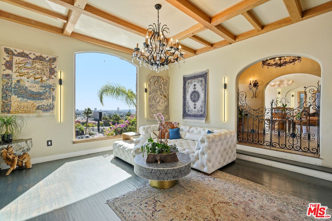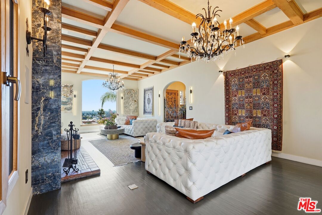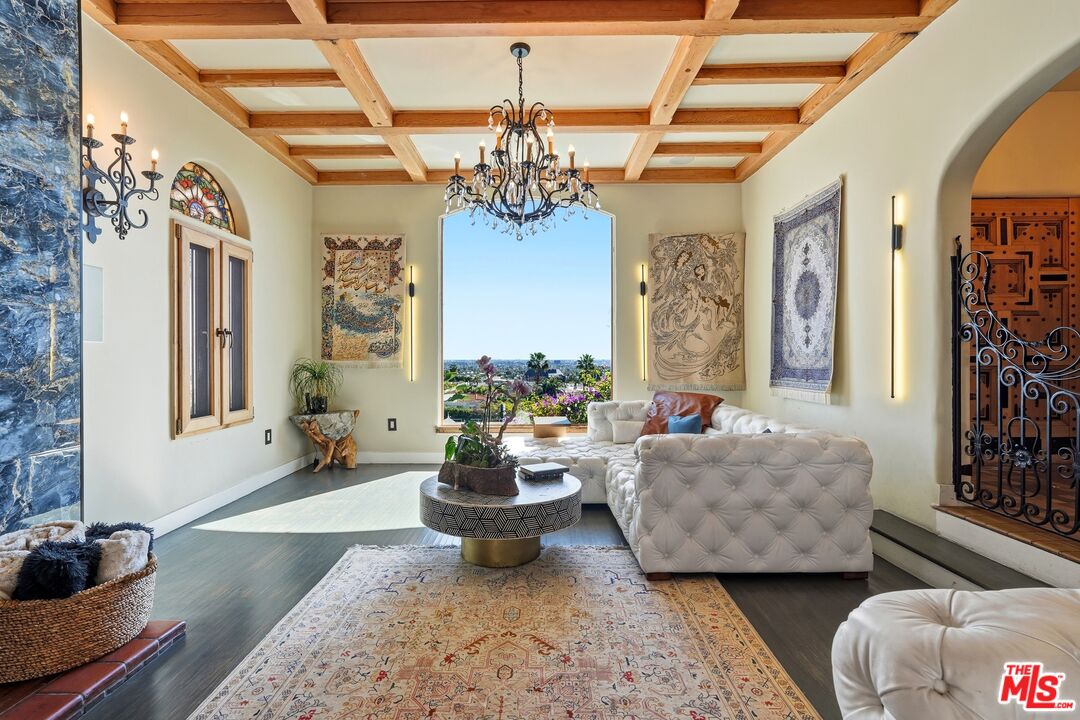 Discover an extraordinary opportunity just steps from the legendary Sunset Strip fewer than 100 walking steps from the boulevard to this hidden gem, with ample parking in the quiet cul-de-sac. This sun-drenched Tuscan-inspired villa offers unparalleled convenience to Chateau Marmot, The Comedy Store, Laugh Factory, Hide, and the vibrant energy of West Hollywood's nightlife, dining, and entertainment scene. This rare 1928 residence underwent a meticulous, comprehensive $2M renovation completed in January 2023, preserving its historic soul while infusing thoughtful contemporary luxury. Bathed in abundant natural light, the home boasts bright, airy spaces throughout. Panoramic views sweep from sunrise to sunset: eastern city lights stretching from Pasadena hills to glittering DTLA, with ocean glimpses on clear days. The chef kitchen impresses with premium Miele appliances, sleek counters, and a double island designed for effortless entertainment. The thoughtful floor plan includes: Two expansive master suites, each with his-and-hers closets and full-length folding doors opening to generous 600 sq balconies capturing those breathtaking vistas. Two additional spacious bedrooms, each with unsuited bathrooms and cozy fireplaces. Fireplaces in all bedrooms, plus the living room, family room, and great room for layered warmth and ambiance. A junior suite on the first floor (above street level), overlooking the pool with city views, unsuited bath, and private sauna. A cozy suite with private entrance and direct pool access serves perfectly as guest quarters or a secluded retreat. Entertain with ease thanks to a sparkling pool and Jacuzzi, private sauna, dedicated red& amp; white wine cellar, charming courtyard with fountain, and seamless indoor-outdoor flow. Additional highlights and lush landscaping that envelops the property in tranquility. This home carries a whispered Hollywood legacy believed to have been owned or long-term occupied by icons like Clark Gable, Barry Manilow, and Mickey Rourke, though not all details appear in public records. Over the decades, numerous celebrities have rented it during LA projects, drawn to its discreet location and star-quality allure. The rare retreat that invites you to linger, cancel plans, and simply savor the moment. A truly one-of-a-kind treasure for the discerning buyer seeking authentic LA magic.