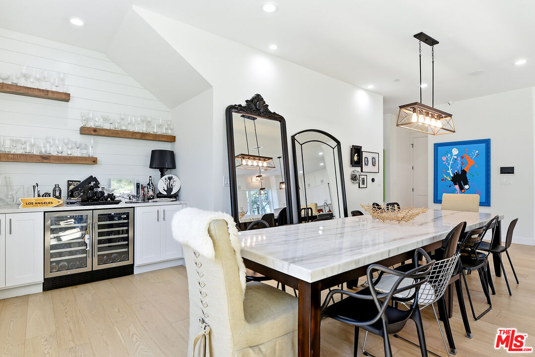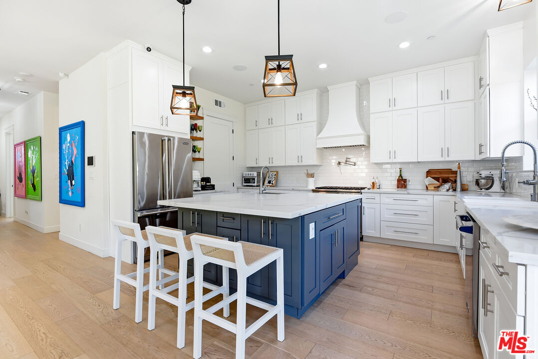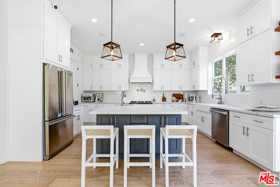 Stunning newer construction 5-bedroom, 4.5-bathroom home located in the coveted North Kentwood neighborhood in Westchester. This custom-built modern farmhouse is situated on a tree-lined street. Meticulously crafted with modern elegance, this residence combines contemporary design with timeless appeal. Inside, the bright open floorplan features soaring ceilings and an abundance of natural light, wide plank European white oak flooring flowing throughout, Shiplap, and custom built-ins adding to the home's sophisticated charm. The chef's kitchen is equipped with Viking appliances, quartz countertops, an oversized island with prep sink, wall-mounted pot filler and custom hood, custom tile backsplash, and custom cabinetry. A seamless transition from the kitchen to the living area, which opens directly to the outdoor space through panoramic sliding glass doors , creating the ideal setting for entertaining. The backyard is a private oasis with lush greenery and a charming patio. Designed for both relaxation and entertainment, the home also includes a spacious living area with a cozy electric fireplace with a floating walnut mantle, a separate dry bar with double-wide wine fridge, and a stylish powder room. The downstairs bedroom features a private en-suite bathroom and charming views of the tree-lined street, making it an ideal space for a home office or a welcoming guest suite. The second level features 4 bedrooms and 4 bathrooms, including the luxurious primary suite offering a private balcony, dual walk-in closets, and a spa-like en-suite bathroom with a marble dual vanity and a wet room with a soaking tub. Additional premium features include a two-car garage with an EV charger, dual-zone, central air and heat, upstairs laundry with sink, and a smart home system which includes keyless entry, lighting control, surround sound, security cameras, and video doorbell.