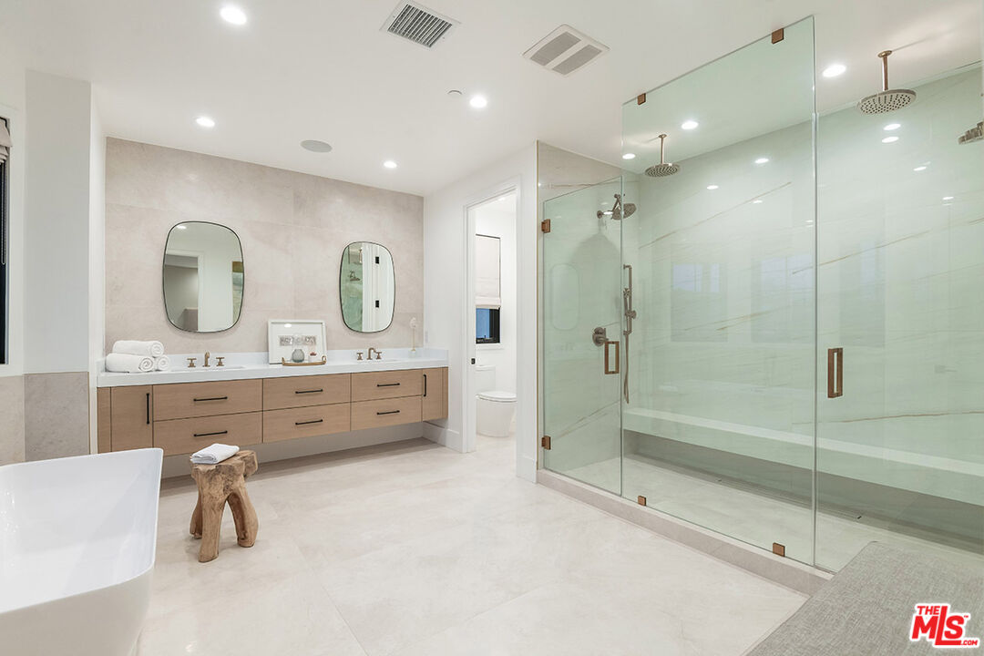 One of the finest examples of blending organic and modern design, this stunning West Hollywood home redefines luxury living with elegant design and state-of-the-art amenities. Spanning approximately 5,036 square feet, this smart home is a masterpiece of seamless, light-filled spaces and designer finishes. The grand primary suite impresses with double-entry doors, soaring ceilings, a walk-in closet, and a luxurious spa-inspired bathroom. The gourmet chef's kitchen features custom countertops, high-end Sub-Zero and Wolf appliances, and a butler's pantry. The open kitchen and family room flow into the outdoor living space, creating a true indoor-outdoor experience. This home is thoughtfully equipped with a dual electric car charger in the garage and a state-of-the-art whole-house water filtration system with water harmonizing, ensuring comfort and convenience at every level. Perfect for entertaining, the property includes a private courtyard with an outdoor BBQ, a beautifully landscaped backyard, and a private, state-of-the-art movie theater. With Control4 home automation, this property balances classic elegance with cutting-edge convenience, making it a standout retreat. Owner has record of previous city approved permit for a 10" x 26" pool with 10" x 5" hot tub.