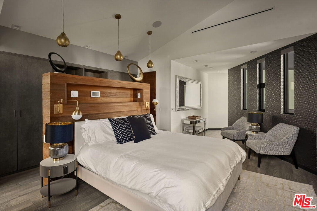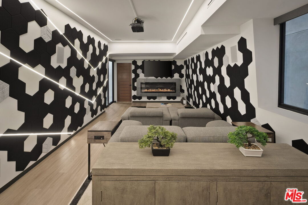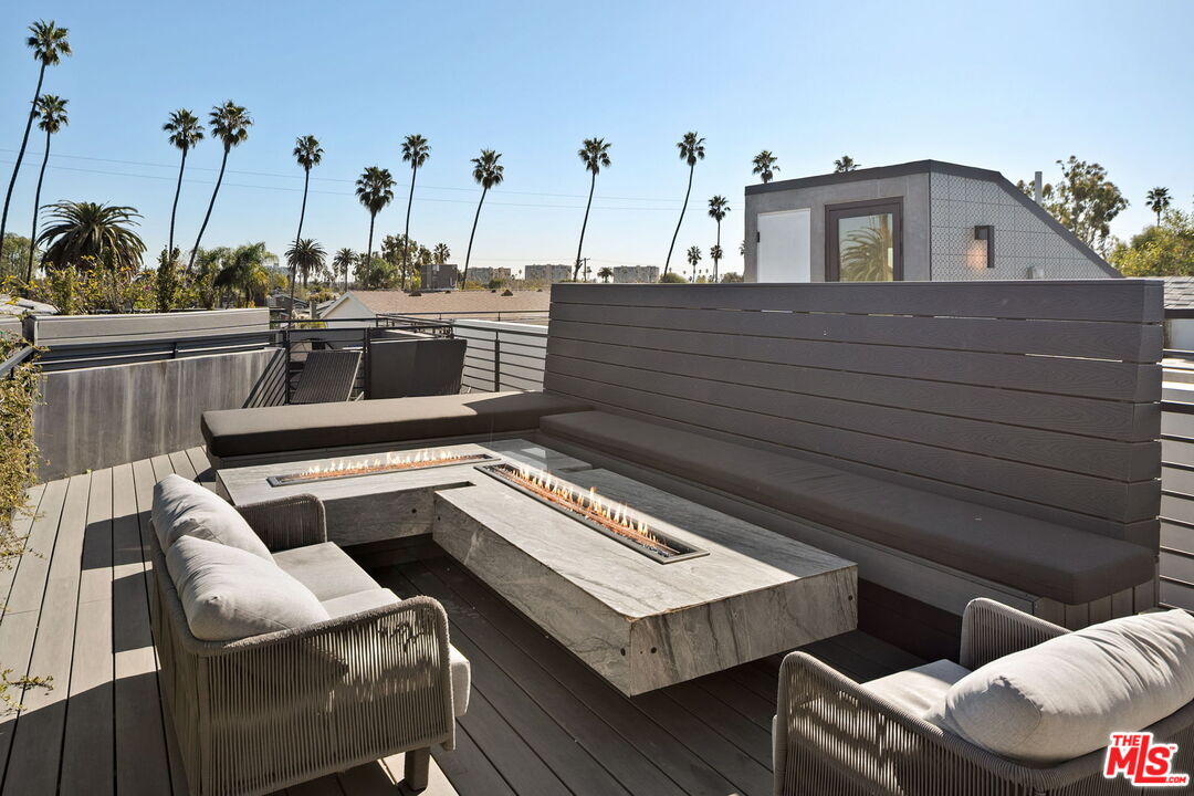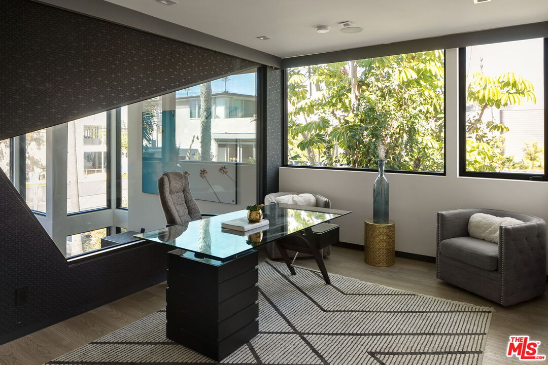 Meet the ever-enchanting Lucia. Located at 840 California Avenue, this bold, light-filled architectural residence in the heart of Venice is an iconic expression of contemporary design and coastal sophistication. Celebrated across major design publications, Lucia is the first of the acclaimed Glass Ladies -- a trio of sculptural homes conceived by renowned designer Alon Zakoot and revered for their striking geometry and refined livability. Inside, a rare display of bold design and exceptional craftsmanship unfolds across a thoughtfully composed open-plan main level. A dramatic double-height living room sets the tone, while the adjacent dining room invites gatherings both intimate and grand. The designer-crafted kitchen is a true culinary showpiece, featuring European lacquer cabinetry, Calacatta stone countertops, premium appliances, and a seated pass-through bar that opens seamlessly to the poolside lounge. Smart home tech, including home automation and integrated surround sound, enhances both everyday comfort and elevated entertaining. Ascend the floating staircase to discover an intimate family room, a dedicated executive office, a secondary bedroom suite, and the grand primary retreat. A sanctuary of relaxation, the primary suite boasts soaring ceilings, a private balcony with gas fireplace, generous closet space, and a spa-inspired bath complete with jetted soaking tub, glass-enclosed tile shower, and dual vanities. On the lower entertainment level, a spacious home theater with built-in bar and a rare underwater pool viewing window creates a truly cinematic experience. A junior primary suite with private open-air patio and gas fireplace, along with an additional bedroom suite, offers versatility for guests or a variety of lifestyles. Crowning the residence is an expansive rooftop deck with sweeping 360-degree views of swaying palms, majestic mountains, and the sparkling cityscape. A built-in outdoor kitchen and firepit lounge create a destination for alfresco dining and relaxing in the California sunshine. Supremely positioned just moments from the beach and vibrant Abbot Kinney Boulevard, the home is surrounded by world-class dining, shopping, and laidback beach culture, representing Westside living at its most inspired.