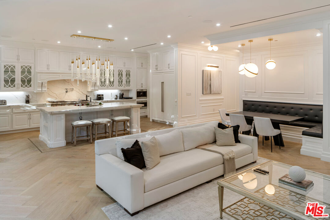 Welcome to a modern Cape Cod masterpiece offered fully furnished, that blends timeless design, high-end finishes, and cutting-edge smart home technology in one of West Hollywood's most coveted neighborhoods. Thoughtfully designed with effortless indoor-outdoor flow, this residence offers the perfect balance of warmth, sophistication and innovation. Step inside to find elegant, light-filled living spaces, including formal living and dining rooms, a cozy family lounge and a sun-drenched breakfast nook. The chef's kitchen is a showpiece in itself, anchored by Sub-Zero and Wolf appliances, custom cabinetry and exquisite designer detailing. Retractable glass doors open to a private backyard oasis, featuring a covered patio, a white-pebble pool, and an automated spa, ideal for entertaining or everyday retreat. Upstairs, the primary suite serves as a serene sanctuary, complete with dual couture closets and a marble-clad spa bath featuring a soaking tub, steam shower, and dual vanities. Two additional flexible spaces, a custom-built office and a state-of-the-art soundproof home theater, offer unmatched versatility for modern living. Every inch of this home is elevated by smart technology and security, including a fully integrated Control4 system, Bose surround sound, and a gated entry. This is a rare opportunity to own a home that perfectly embodies sophistication, innovation, and the best of West Hollywood living.