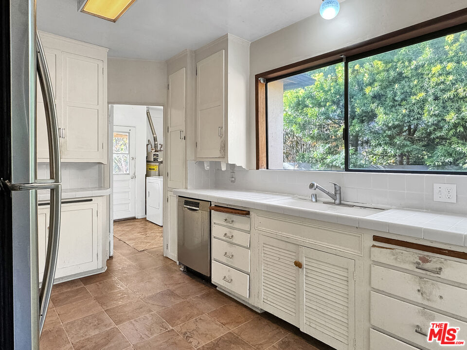 Looking for a compelling remodeling or redevelopment prospect? Situated in Santa Monica's sought-after Northeast neighborhood, this 3-bedroom, 2-bath home holds untapped potential! The 1,435-square-foot residence rests on a generous 7,989-square-foot lot, providing a prime setting for expansion. Natural light streams through the bay window into the living room, where a retro-style fireplace creates a warm, vintage-inspired conversation hub. Built-in shelving in the dining area displays your cherished knick-knacks. A picture window above the kitchen sink brightens its tiled countertops and appliances, while ample hallway storage leads to comfortable bedrooms. Outdoors, an extensive backyard filled with vibrant foliage invites relaxation and entertaining. Notable features include a laundry room, a carport with convenient alley access, and a detached ADU complete with kitchenette, loft, and full bath, ready for guests, creative use, or rental income. Close to Erewhon, Brentwood Country Club, Douglas Park, and the iconic shops along Wilshire Boulevard, and only a short drive to Palisades Park, Santa Monica State Beach, PCH, and downtown Santa Monica, it combines location, character, and exceptional opportunity. Envision your next chapter here!