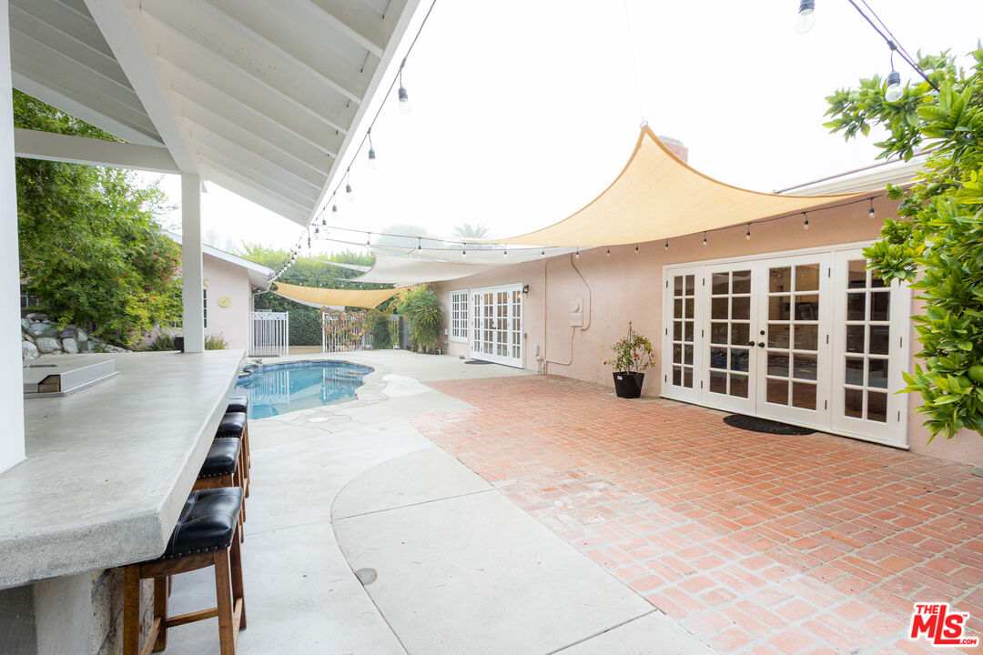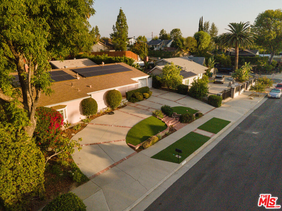 Welcome to 8510 Capistrano Ave a beautifully updated four-bedroom home tucked away in one of West Hills' most desirable neighborhoods, known for its tree-lined streets, great schools, and friendly community atmosphere. Step through the front door and feel the natural light immediately fill the space. The main living room features elegant new wood-style floors, a large skylight, and a cozy dual gas-and-wood fireplace. Its classic wood-framed doors with multiple square glass windows and matching side panels let in soft light and open directly to the backyard, giving the room a bright, inviting, and timeless feel. Just off the entry, the first bedroom makes an ideal home office or guest room, freshly painted and full of natural light. The modern kitchen sits at the heart of the home with sleek white cabinetry, a professional six-burner range with dual ovens, stylish backsplash, dishwasher, and a large refrigerator. Beyond the kitchen, a second spacious living or dining area with tile floors, bright lighting, and another set of glass doors to the backyard offers the perfect space for family dinners or entertaining. To the left of the main living area, a hallway leads to two additional bedrooms and a beautifully updated full bath, all freshly painted in soft gray tones with plantation shutters and new finishes. At the back of the home, the primary suite is impressively large a true retreat with generous space for a full sitting area or reading nook, multiple closets, and its own private access to the backyard. Step outside to a resort-style backyard designed for comfort and entertaining. Enjoy a recently renovated pool, a Jacuzzi spa, and a fully covered outdoor kitchen with a stove, barbecue, refrigerator, and large countertop perfect for year-round gatherings. Just steps away, a beautifully finished standalone sauna offers a private, spa-like escape. The two-car garage includes a separate enclosed bonus room with its own private entrance, ideal for a workshop, studio, or hobby space. The yard also features fruit trees pomegranate, orange, and grapefruit providing fresh fruit and natural beauty throughout the seasons. The home is equipped with solar panels, adding energy efficiency and helping reduce utility costs. Bright, spacious, and full of character, this West Hills home perfectly combines timeless design, modern comfort, and resort-style outdoor living offering the best of the California lifestyle in one of the Valley's most sought-after communities.