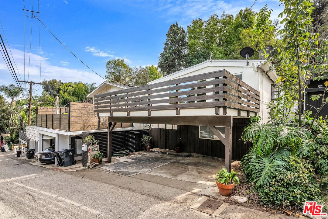 Classic Laurel Canyon 3 bedroom, 2 bathroom cul-de-sac home with huge front deck, shaded rear patio and terraced gardens. The house is freshly painted with bamboo floors throughout the living spaces. Third bedroom has a separate entrance. Sparkling brand-new cook's kitchen with vaulted ceiling. Two-car carport.