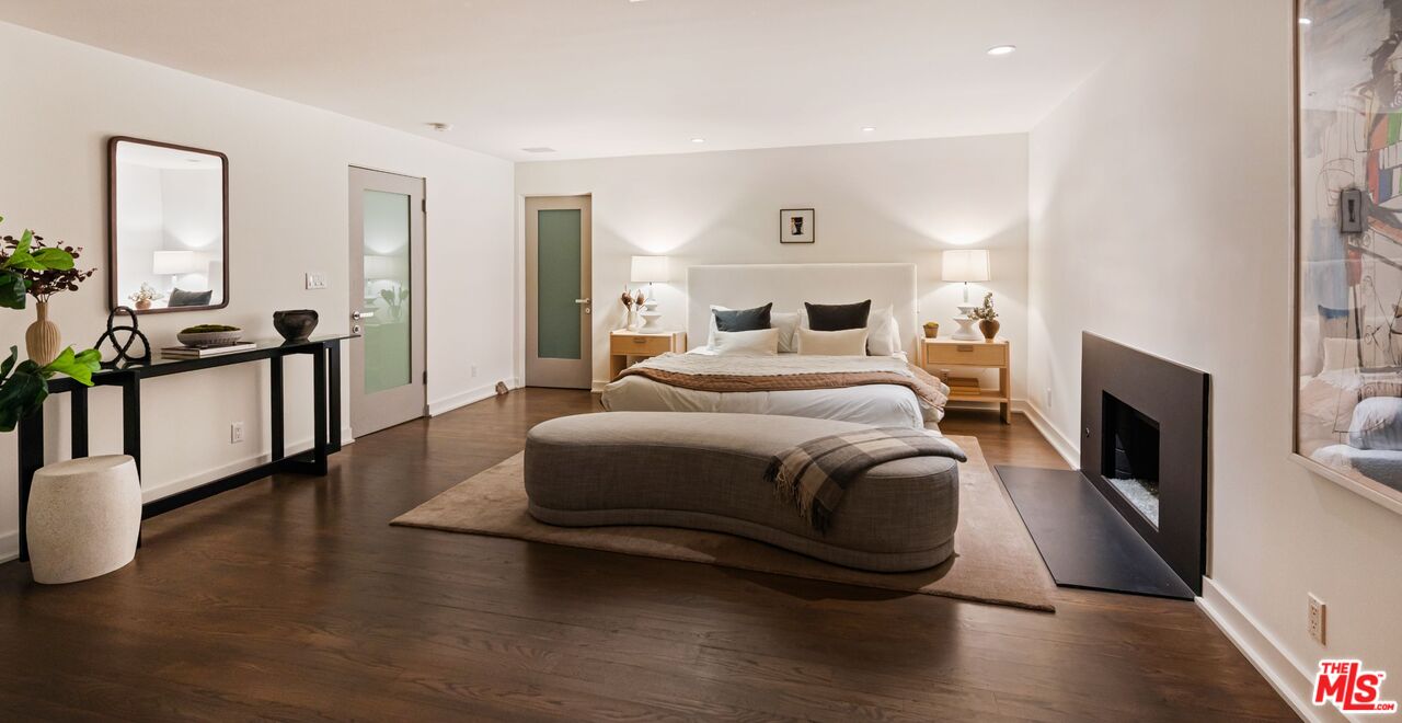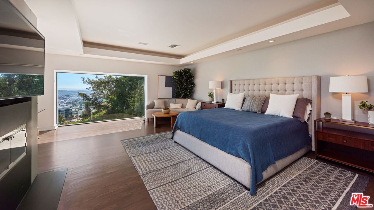 Designed by acclaimed architect Marmol Radziner, this striking modern residence captures breathtaking panoramic views stretching from downtown Los Angeles to the Pacific Ocean. Located just moments from the Sunset Strip's premier dining, nightlife, and shopping, it offers the perfect balance of luxury, privacy, and convenience.Expansive glass walls frame open living spaces that transition seamlessly between the chef's kitchen, dining area, and a flexible lounge that can serve as a private screening room. The outdoor spaces are ideal for entertaining, featuring a sparkling pool, outdoor shower, built-in BBQ, and multiple terraces positioned to take in the glittering city lights.Thoughtfully updated throughout, the home includes modern bathrooms, contemporary flooring, premium appliances, and new climate systems. Upstairs, two spacious primary suites feature fireplaces, walk-in closets, office areas, and retractable glass doors that open to a terrace with its own fireplace and mesmerizing skyline views.This turnkey contemporary residence exemplifies exceptional craftsmanship, timeless design, and an unmatched location in one of Los Angeles' most sought-after neighborhoods.