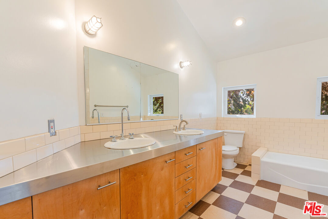 Set on a rare double lot, this character-filled property blends vintage charm with thoughtful modern updates. The home features 3,219 SF of living space on a 7,261 SF lot with 5 bedrooms and 3 bathrooms, including a guest unit with its own laundry setup. Inside, the house is cleverly divided, with a second kitchen, full bedroom, and bathroom tucked away from the primary living area. This well-crafted layout is ideal for multi-generational living, a rental opportunity, or a separate workspace. The main living area is warm and welcoming, anchored by a cozy fireplace and exposed wood beam. Sunlight pours through oversized windows, illuminating the stainless steel appliances and generous counter space in the kitchen. Upstairs, the primary suite is a peaceful escape with a double vanity, soaking tub, separate shower, and striking iridescent tile. The other bedrooms are bright and well-proportioned, with high ceilings and ample space to adapt to various needs. The backyard is private and intentionally landscaped, surrounded by mature trees and vibrant plantings, creating a tranquil setting for gathering or quiet relaxation. With its rare lot size, flexible layout, and detached guest unit, the property offers space, privacy, and the potential for future expansion or redevelopment in a prime location. Situated in the heart of Venice, this home is just moments from its iconic shops, cafes, and coastal lifestyle.