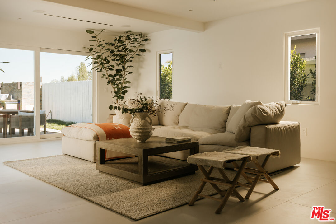 A striking expression of Organic Modern design with Contemporary Mediterranean influences, this fully reimagined single-story residence sits on a 14,013 sq ft lot capturing breathtaking canyon and city views. Spanning 2,757 square feet with 4 bedrooms and 4 bathrooms, the home was taken down to the studs and meticulously rebuilt, resulting in a designer showcase where every detail has been thoughtfully curated.An inviting open-concept floor plan unfolds beneath soaring ceilings accented by graceful architectural arches and skylights that bathe the interiors in natural light from morning through sunset. Walls of sliding glass doors dissolve the boundary between indoors and out, creating effortless flow ideal for both daily living and sophisticated entertaining.At the heart of the home, the chef's kitchen makes a striking statement, featuring leathered stone waterfall countertops, an oversized gathering island, abundant cabinetry, a Thermador range with custom plaster hood, and elegant floating shelves. Oversized porcelain tile grounds the main living areas, while wide-plank hardwood floors add warmth to the private bedroom quarters.The outdoor spaces unfold as a private retreat designed for both relaxation and entertaining, complete with a welcoming porch framed by a grassy yard and artful landscape lighting, a sparkling pool and jacuzzi, outdoor kitchen, firepit lounge, and lush grassy areas in the front and backyardperfect settings for alfresco dining and sunset gatherings.Inside, gas fireplaces in the living room and primary suite finished with touches of Venetian plaster lend subtle vintage elegance. The primary suite offers expansive horizon views, generous closet space, and a breathtaking spa-inspired bathroom with a dramatic stone walk-in shower.The finished and insulated garage, with individual AC offers exceptional versatility and has been thoughtfully prepared to function as an extension of the living spaceideal for a gym, studio, office, or additional flex area.Additional features include a double-zone HVAC system, two AV charging stations, and a tranquil setting within the coveted Kenter Elementary School districtdelivering a sophisticated California lifestyle where design, comfort, and natural beauty converge.