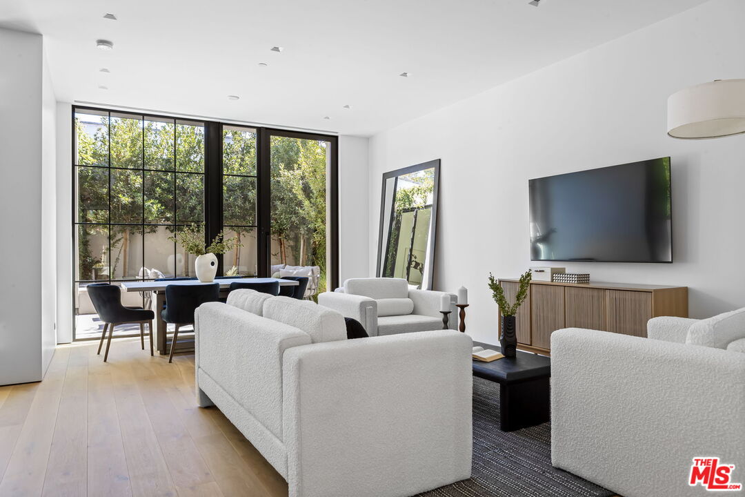 Glass House at 8899 Beverly. West Hollywood luxury presides at 8890 Rosewood Avenue where incredible resort amenities meet architectural brilliance. This exceptional home is part of a unique collection of eight signature homes crafted by the world-renowned architect Olson Kundig, each boasting a distinctive material palette and a one-of-a-kind living experience. Glass House is a stunning home with unparalleled features that epitomize comfort and understated opulence. This three-bedroom, two-level masterpiece immediately makes an impression with a modern exterior featuring exposed structural steel and a curved standing-seam metal roof, complemented by a painted metal trellis wrapping from the front to the side entry. True to its name, Glass House makes use of extensive glazing, soaring ceiling heights, and a natural flow between the indoor and outdoor environments to create open, airy living spaces. Sophisticated yet welcoming in design, the interior boasts wood floors, Lutron HomeWorks QS System lighting, and Fleetwood glazed doors and windows. The gourmet kitchen features top-of-the-line Gaggenau and Miele appliances, dark-stained white oak cabinetry, and custom paneling. A custom stairwell with open-riser wood treads and exposed steel curates an artful transition from level to level.Upstairs, the primary suite includes a private balcony adorned with a woven-wire mesh guardrail and steel grate decking, providing a tranquil retreat to unwind and admire the views. The ensuite bathroom has full stone flooring and walls made of Danube marble. Outside, find a chaparral-inspired garden curated by Coen + Partners, a pool and spa, and a guest house. Explore the eclectic palette of crepe myrtle and cork oak trees, exuberant bougainvillea, sea lavender, and fairy crassula, creating a picturesque backdrop for outdoor gatherings. The signature collection deftly blends individuality and privacy with exceptional resort lifestyle amenities. 8899 Beverly Boulevard - offers residents access to 24-hour concierge service, a state-of-the-art fitness center, and a lushly landscaped oasis with a resort-style pool, spa, a custom outdoor kitchen, and an on-site restaurant, Stella. Experience the epitome of luxury urban living in West Hollywood.
