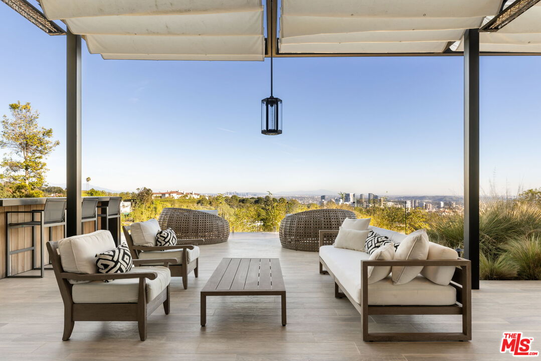Rare Combination of Ken Ungar Design + Head on City Views. Exquisite Interiors by Adam Hunter. Napa Valley modern farmhouse. High quality construction by Shain Development. Custom in every moment and detail. 9,170 Sq Ft+. Excellent floor plan all opening to grounds and views beyond. A soaring 2-story entry and living room to welcome guests. Gourmet kitchen belongs in a showroom. Upstairs features a vast primary bedroom suite with an editorial bathroom that overlooks the city. Total of 7 generous bedrooms and 8 baths. Lower level Entertainment floor offers all the finest amenities including a gym, wine cellar and major screening room. The grounds include an epic zero-edge infinity pool with fire feature, large flat grassy area, and pickleball court. Prime lower Bel Air, minutes to Sunset.