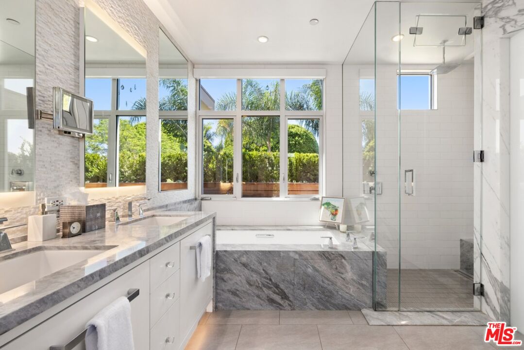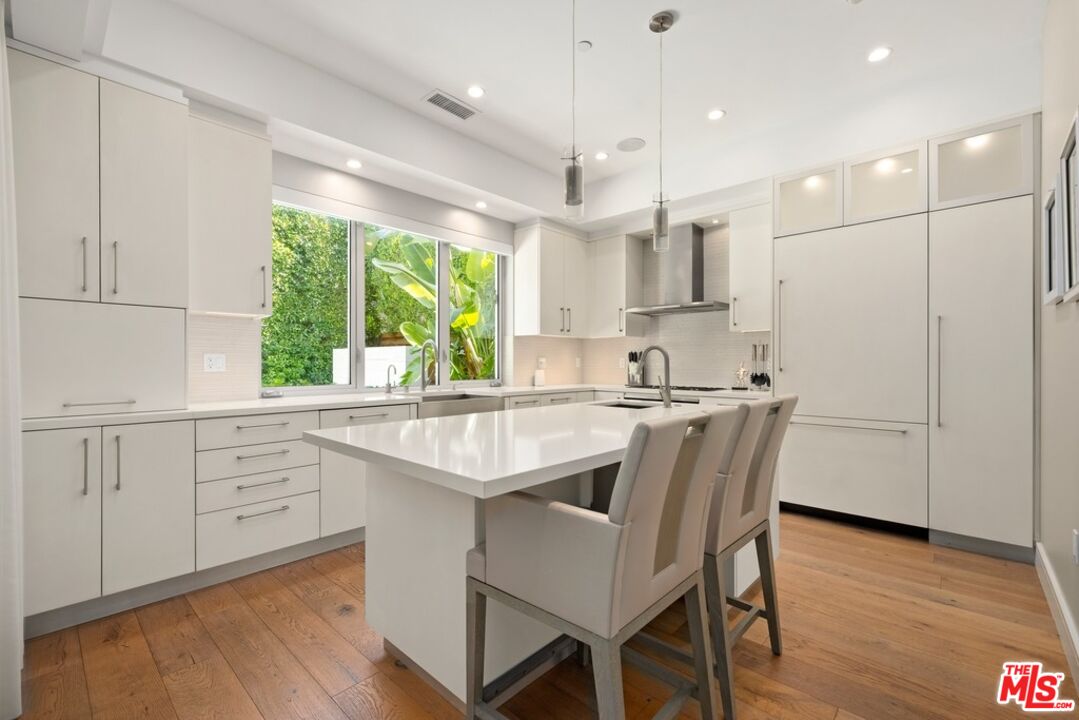 Tucked behind gates and surrounded by mature greenery, this ultra-private modern retreat sits on one of West Hollywood's most coveted blocks and epitomizes indoor-outdoor living at its finest. Just moments from Beverly Hills, the residence has been reimagined by its current owner to evoke the experience of a world-class luxury hotel. A foliage-lined entry leads into a hidden garden, a magical courtyard oasis that flows effortlessly into the living room. The first floor embraces a true open-concept design, with interiors that seamlessly expand to the front and rear gardens, creating a sanctuary of light, privacy, and calm. Wide-plank hardwood floors and a sleek fireplace anchor the living room, while the chef's kitchen dazzles with Miele appliances, a large island, and custom cabinetry. The adjacent dining and family room open onto a backyard escape complete with a covered, heater-equipped lounge, a sparkling pool with fountain, and a spa-all enclosed by soaring hedges for total seclusion. The attached garage, currently configured as a bespoke storage suite, offers flexibility for additional living, creative, or fitness space. Upstairs, the primary suite is a study in luxury, with abundant custom closets (including a converted third bedroom), refined window treatments and built-ins, a balcony, and a marble spa-like bathroom with dual sinks and a glass-enclosed shower. The second bedroom is bathed in natural light and spills onto a romantic rooftop patio. Additional amenities include a Control4 home automation system, motorized blinds throughout, and a comprehensive security system with cameras. Set in an unmatched central location, the home is minutes from the acclaimed dining, shopping, and nightlife of Robertson, Melrose, and Beverly Hills.