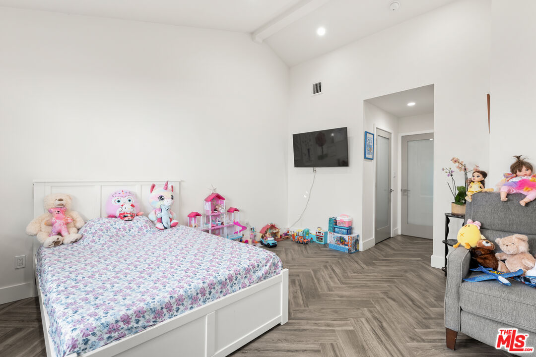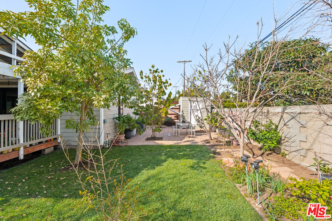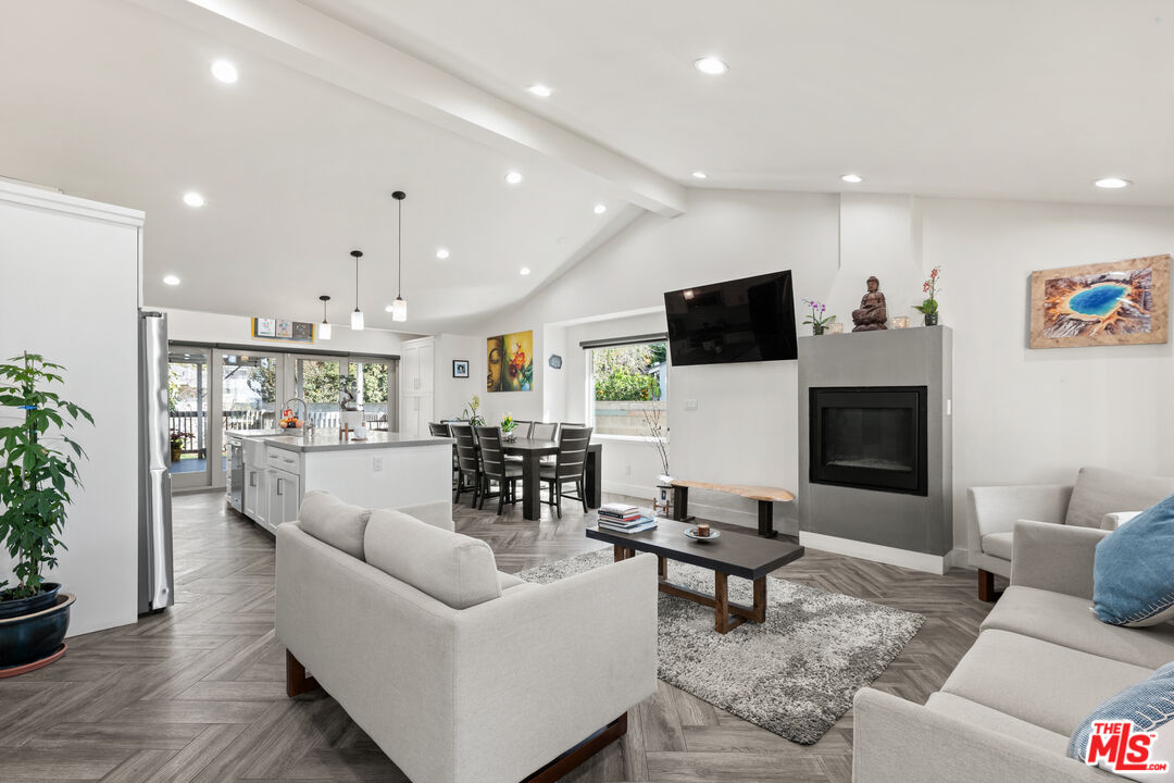 A feel good ranch style home in the Marlow Burns tract of Westchester, simply and wonderfully expanded and renovated in 2019, offers exceptional curb appeal and an open floor plan on a greenbelt street. A charming porch entrance with a custom front door greets you as you step inside and are welcomed by vaulted ceilings and a perfect amount of natural light infusing the open floor plan. The kitchen boasts a large center island with seating, quartz countertops, subway tile backsplash, stainless steel appliances, and soft-close shaker cabinets, with a large pantry, and a fireplace anchoring the living area. Step out onto the large covered deck for dining and lounging. The en suite primary bedroom features vaulted ceilings, a walk-in closet, and large sliding doors that open up to the rear deck. The left wing of the home features three bedrooms, one en suite and two with generous sizing, including a large second bedroom with a walk-in closet that will make you think you've walked into the primary bedroom. The home features well appointed finishes throughout, including 7' doors and sliders, fiberglass double pane windows, copper plumbing, a tankless water heater, and recessed lighting with dimmers. Additional features include central AC and heat, and a finished attached garage with laminate flooring, storage cabinets, serving as a versatile space perfect for a playroom, workshop, meditation, or training area. The hallway to the garage is flanked by a coat closet and laundry closet with side by side appliances and additional shelving. The backyard also features bonuses in the form of a storage shed, fruit trees and extra room for an herb garden.