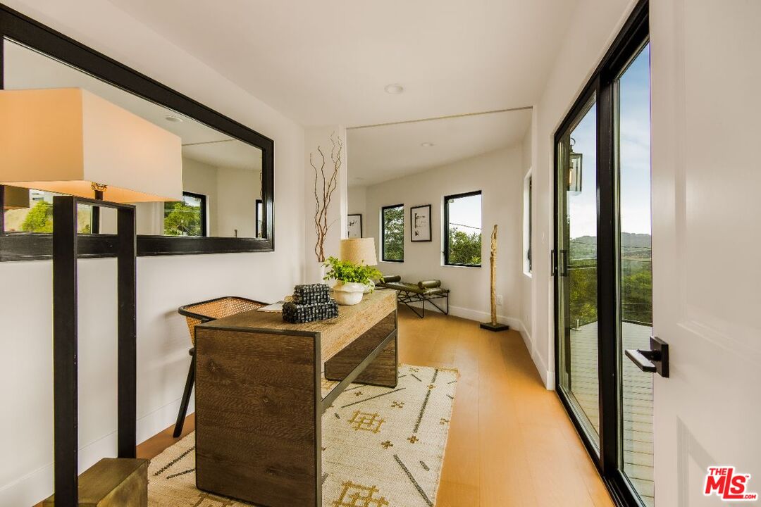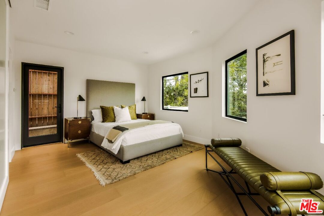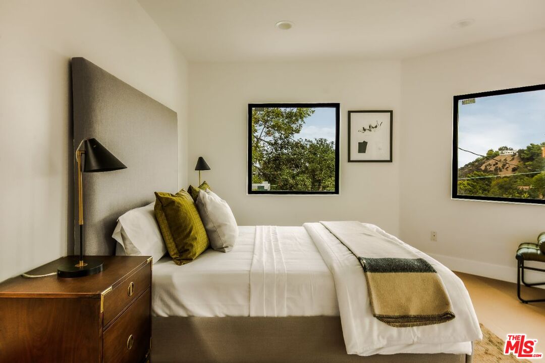 Showcasing captivating city views from its hillside perch, this newly reimagined modern residence in the iconic Hollywood Hills embodies the essence of contemporary California living. Spanning approximately 2,740 sq. ft., the home features wide-plank select-grade hardwood floors, light-filled open spaces, and a seamless indoor-outdoor flow designed to embrace the surrounding vistas. The chef's kitchen impresses with custom real-wood cabinetry, brand-new Miele appliances, and Calacatta Gold marble countertops. The primary suite offers a spa-inspired bath, custom walk-in closet, and private balcony overlooking the glittering city below. Additional bedrooms provide flexibility for guests, family, or a home office, including a guest suite/studio with a private entrance. Multiple terraces and a canyon-view deck create the perfect setting for relaxation and entertaining. Ideally located within the coveted Wonderland School District, with easy access to Laurel Canyon, Sunset Blvd, and Mulholland Drive.