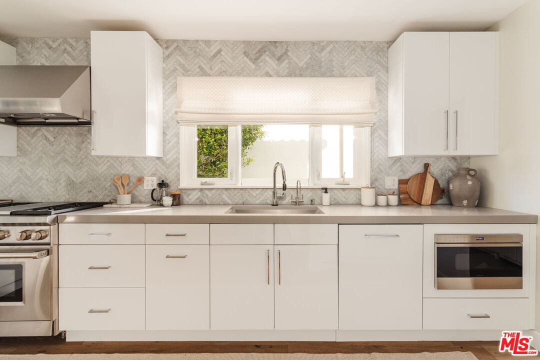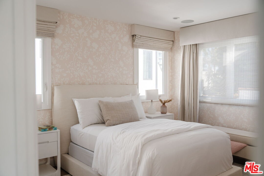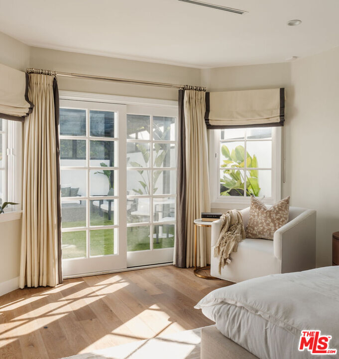 Set along a quiet, tree-lined street in a sought-after pocket of West Hollywood, this fully gated Spanish Revival has been thoughtfully reimagined through a comprehensive renovation completed between 2020 and 2024. A newly added second level and meticulous modernization of the main residence, guest house, and surrounding grounds bring contemporary ease to the home's enduring architectural character. A hedged front garden creates a graceful approach, opening to interiors defined by warm wood floors, generous natural light, and a calm, cohesive palette. The living spaces unfold with quiet refinement -- from the inviting living room to a sunlit dining area and a beautifully appointed kitchen designed for both everyday living and effortless entertaining. Caesarstone surfaces, Sub-Zero and Wolf appliances, and abundant pantry storage anchor the space with understated sophistication. Advanced home tech is seamlessly integrated throughout, including Sonos surround sound, Lutron lighting, smart climate control, dual tankless water heaters, automated pedestrian and driveway gates, and a security system with perimeter cameras. The main residence offers three en-suite bedrooms, including a serene primary suite on the main level. Here, sliding doors open directly to the garden, while a custom walk-in closet and spa-inspired bath -- featuring a glass-enclosed rain shower and dual floating vanity -- create a tranquil retreat. Designed with Southern California living in mind, the backyard unfolds as a series of intimate outdoor moments. Two custom pergolas frame areas for dining and lounging, while a turf lawn and tall privacy fencing create a secluded setting for entertaining. A fully renovated detached guest house -- with its own designer kitchen, living space, bedroom, and full bath -- offers flexibility for extended stays, a creative workspace, or potential rental income. Moments from the energy of West Hollywood's entertainment corridor and world-class dining and shopping along Beverly Boulevard and Melrose Avenue, the home offers a rare balance of architectural presence and quiet residential charm in the heart of the city.