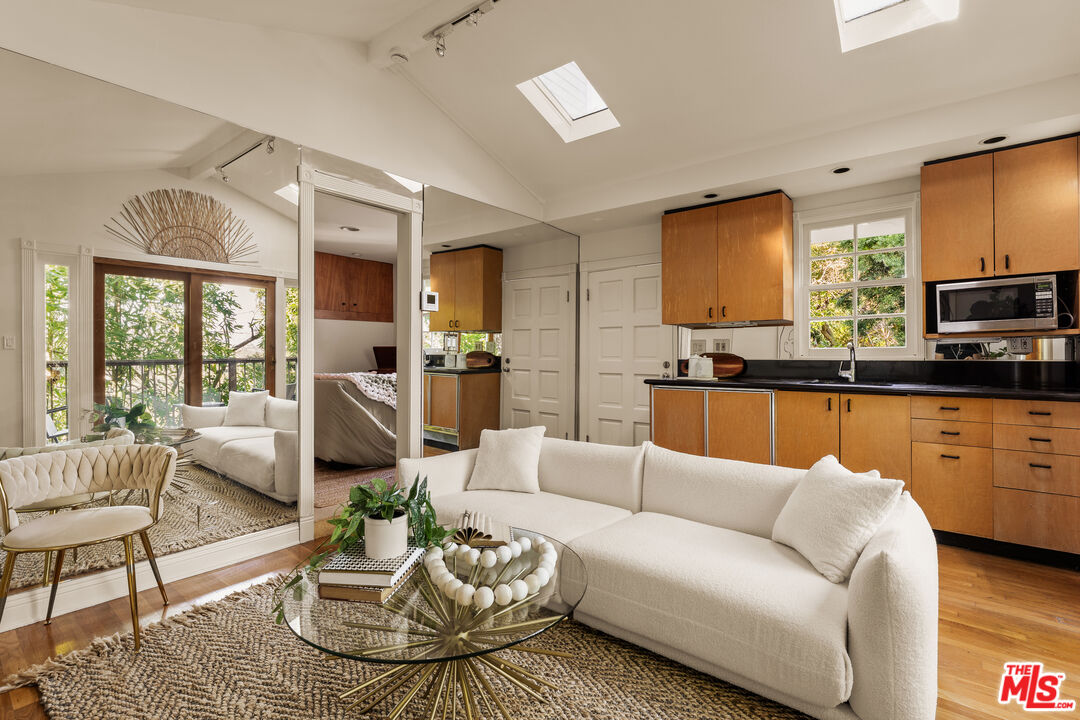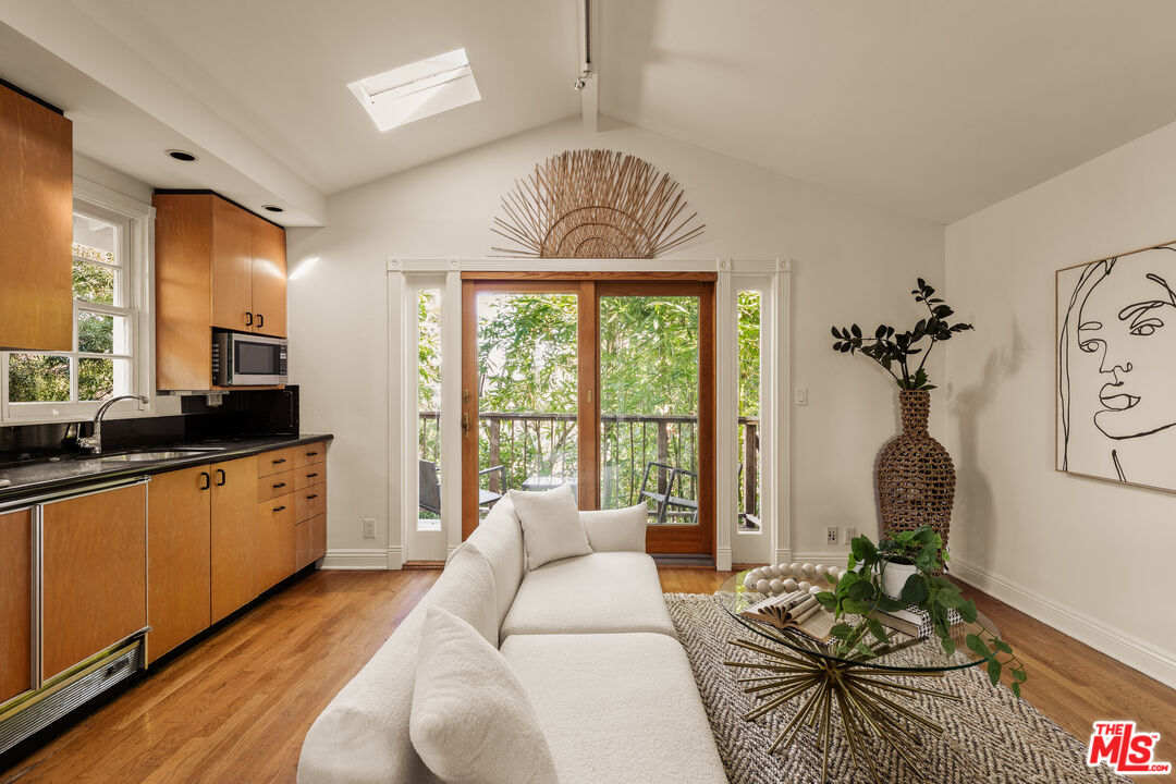 Perched above the iconic Sunset Strip, 8957 Appian Way offers the rare combination of total privacy and unbeatable proximity. Fully walled off from the street, on a quiet hillside street, this updated Cape Cod style retreat feels worlds away from the city, yet sits just minutes from West Hollywood, Beverly Hills, and easy access to the Valley. The ideal pied-a-terre, it delivers the effortless indoor-outdoor lifestyle that defines Los Angeles living. The single-story main residence features 2 bedrooms and 2 baths, thoughtfully designed for comfort, simplicity, and style. Light-filled interiors open to expansive outdoor spaces designed for both intimate lounging and chic entertaining. The updated kitchen is equipped with high-end stainless steel appliances, offering functionality and elegance whether hosting friends or enjoying a quiet night in curled up in front of the fireplace. Outside, a series of curated environments unfold: a built-in grill, custom seating, and a sun-drenched sundeck all framed by greenery and absolute privacy. A separate guest house, complete with its own kitchen, living room, bedroom, bath, and outdoor space, creates the perfect setting for guests, creative workspace, or extended-stay living. It's rare flexibility in one of LA's most coveted hillside pockets. Private. Stylish. Minutes from everything. 8957 Appian Way is a serene escape in the heart of the city. PUBLIC RECORD LIVING SQUARE FOOTAGE OF 1,487 IS BELIEVED TO NOT INCLUDE THE GUEST HOUSE LIVING SQUARE FOOTAGE, WHICH IS WHY THE LIVING SQUARE FOOTAGE IS REFLECTED AS "0"