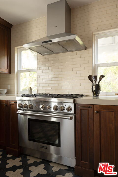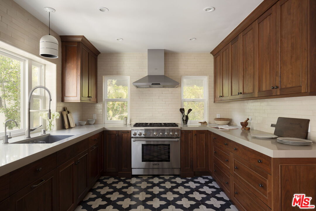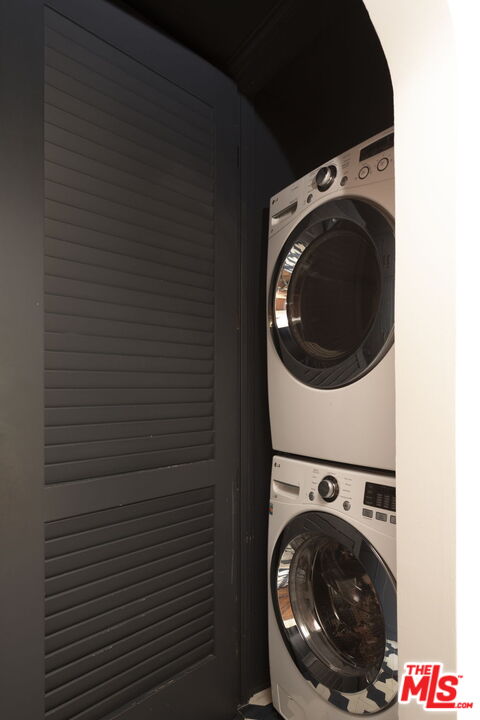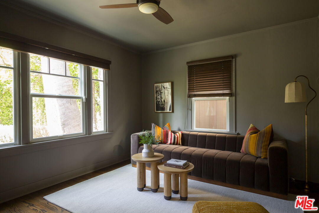 Walled and gated designer done retreat in the heart of WEHO. Surrounded by mature hedging and lush professionally landscaped and lighted yard. Formal entry with Phillip Jeffries wallpaper and Jason Koharik light fixture welcomes you to the living room with gas burning fireplace and solid oak hardwood floors. Dining room with French doors opens to the kitchen with custom walnut cabinetry, Thermador appliances, Walker Zanger Quartz counter tops and gorgeous Granada tiled floors. Separate laundry area with stackable full size washer/dryer. Primary suite with French doors overlooks the backyard with beautiful Carrera marble bathroom with separate tub and shower. Walk-in closet with built-in safe. 2nd bedroom with updated bathroom + a den with custom built-ins could also be a home office or 3rd bedroom. Backyard features a large deck and grassy yard with newly installed turf. Garage is multi-functional with built-in AC that could be a gym or home office. Located close to some of the best restaurants and shopping the city has to offer. Would make a wonderful place to call home!