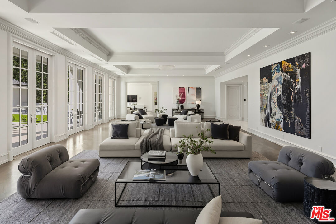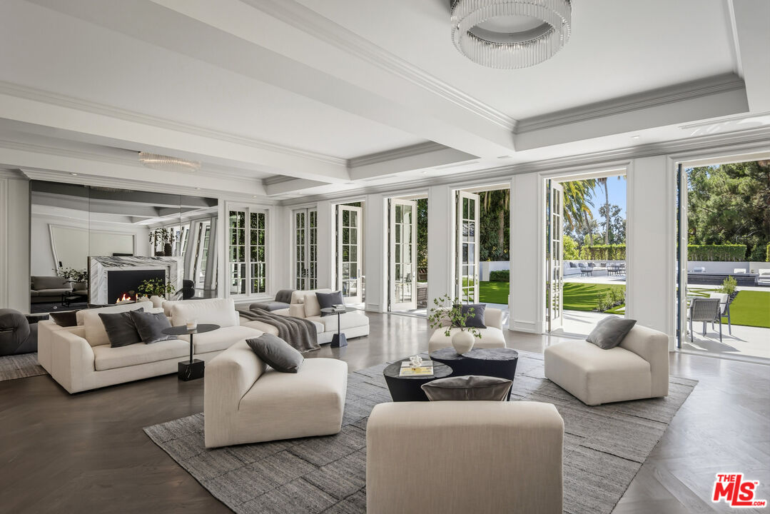 Neighboring the legendary Beverly Hills Hotel, this 6-bedroom, 10-bath estate has been reimagined with new facades, a resort-style pool & spa, and lush gardens that deliver both privacy and unrivaled pedigree in the heart of 90210. Past the marble foyer and sweeping grand staircase, the oversized living room opens with ten sets of French doors, while an Italian-imported chef's kitchen, cocktail bar, and glass wine display create a natural flow for effortless entertaining. Upstairs, four huge bedroom suites include a primary with dual baths, oversized closets, and a private terrace overlooking the grounds. Massive guest house hidden below the backyard, offers a state of the art cinema and Miele concession bar, gym, two guest rooms, tons of storage, and a four-car garage. This home is situated on an oversized street to street lot meaning it has two access points to come and go. Circular driveway in the front as well rounds out this legendary estate.