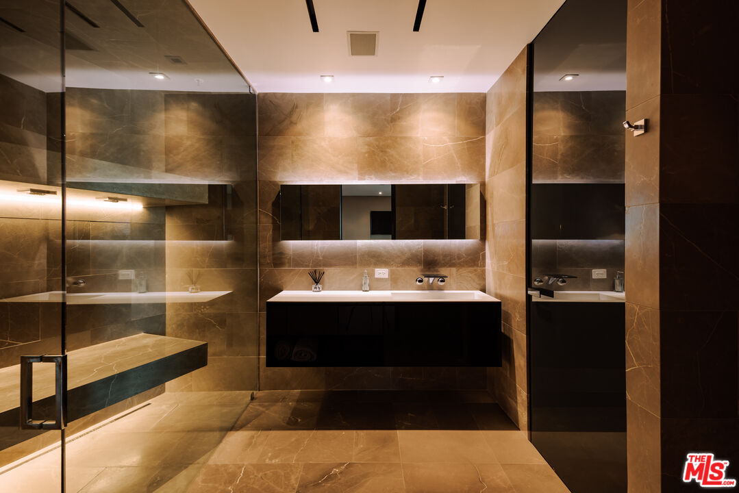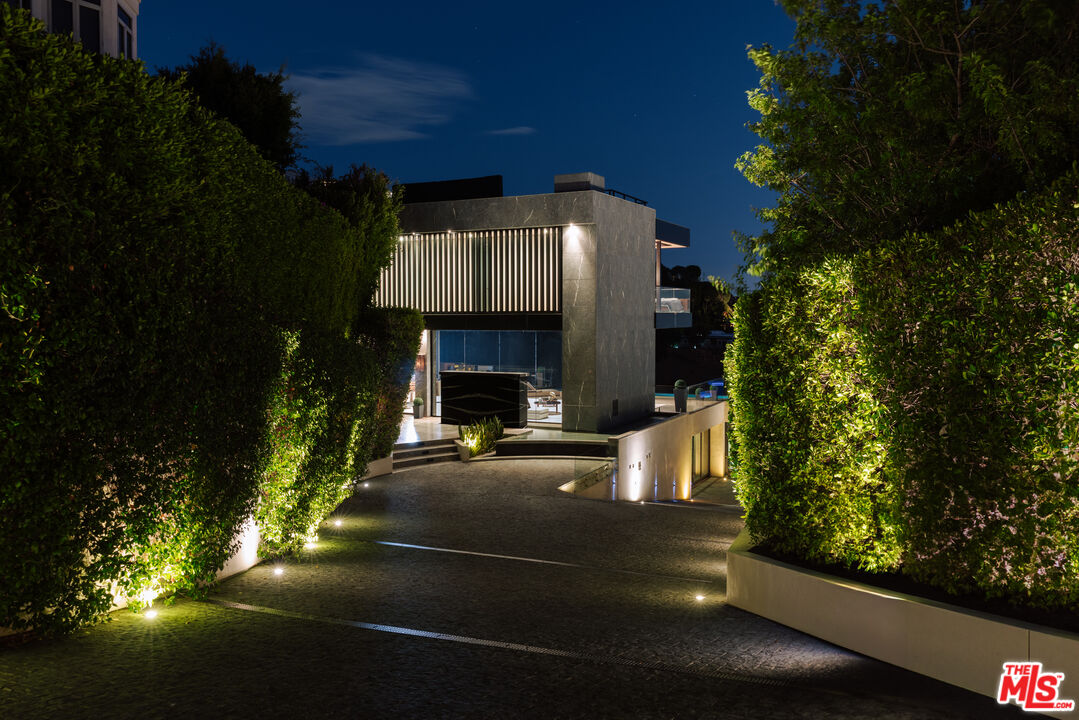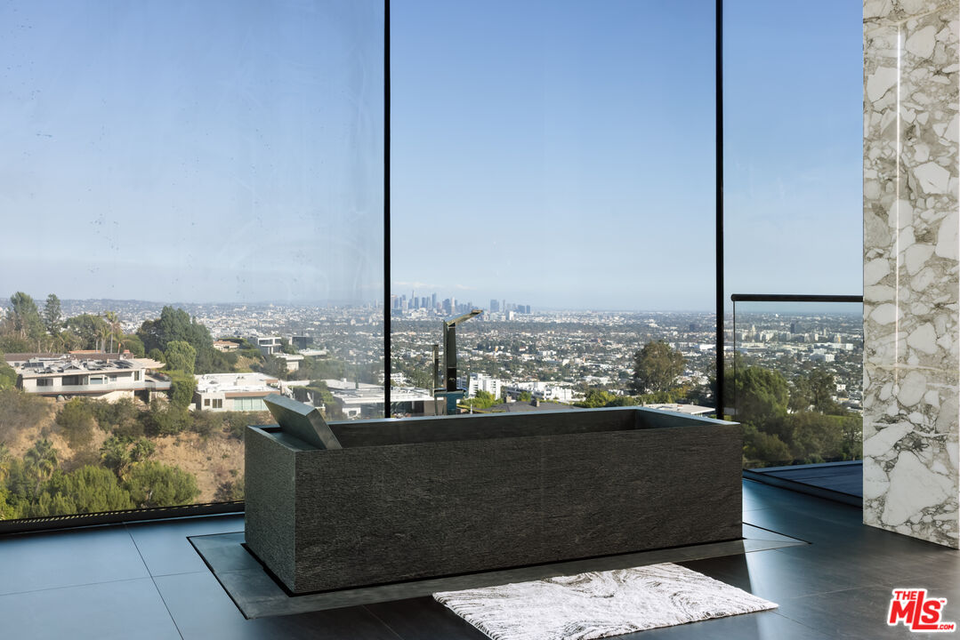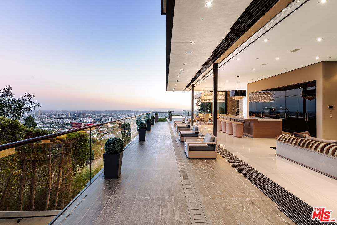 Perched high above the Sunset Strip, 9199 Thrasher Avenue is a turn key architectural masterpiece by internationally acclaimed architect Paul McClean, commanding one of the most dramatic vantage points in all of Los Angeles. Walls of glass frame breathtaking 280 panoramic views that sweep from the shimmering Downtown skyline to the distant coastline of Catalina Island. By day, the residence floats effortlessly above the city; by night, it transforms into a luminous observatory of twinkling lights and endless sky. A grand double-height entry with a 34-foot Murano crystal chandelier adorned with 24K gold leaf and hand-blown glass sets a tone of artistry and sophistication. The open-concept great room flows onto an expansive terrace where a sleek infinity-edge pool and spa appear to dissolve into the horizon. The custom Italian kitchen by ErnestoModa, crowned with a Fendi chandelier and fitted with Miele appliances, is as sculptural as it is functional.Every space has been designed for indulgent living and effortless entertaining from the glass-enclosed wine cellar, fully equipped gym with horizontal massage shower, and cinematic theater, to the lounge with wraparound fire pit and walls of retractable glass that blur the line between indoors and out. The primary suite is a private retreat with a bar, boutique-style showroom closet, and a spa-inspired bath that captures the essence of luxury resort living. Fully integrated Creston Smart Home technology completes this extraordinary modern sanctuary a rare opportunity to own a true Paul McClean trophy estate in the Bird Streets.