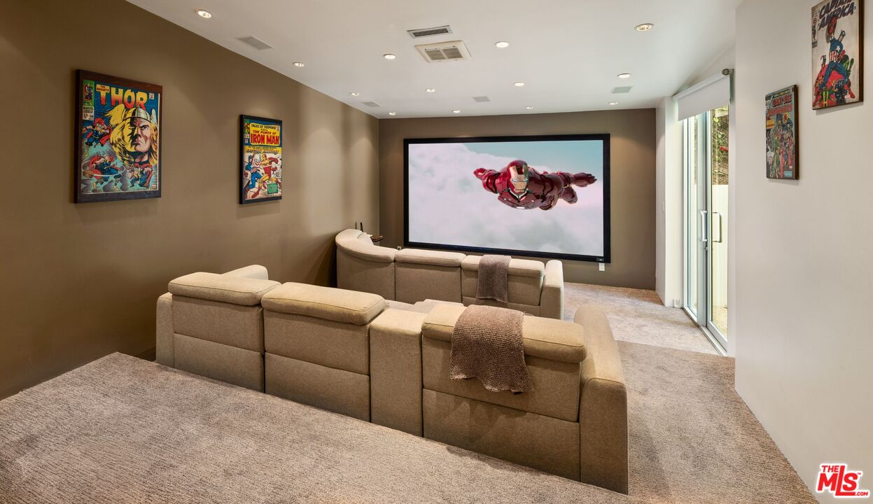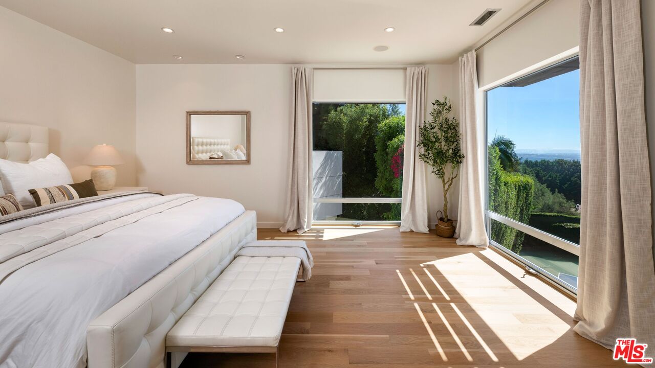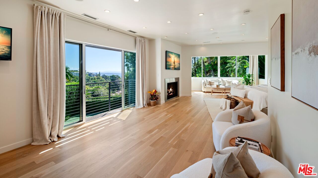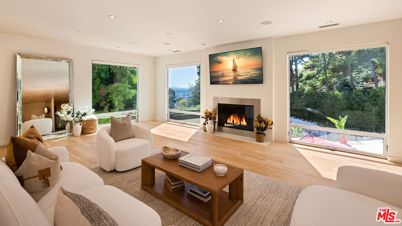 Set behind gates in the exclusive Bird Streets, Warbler Way is a .57-acre tennis court compound where architectural sophistication meets resort-style living. Bold and timeless, this modern masterpiece blends luxurious comfort with sleek design and total privacy. Walls of glass frame sweeping views of the hills and city skyline, while natural light floods the open interiors finished in new organic modern wood floors and curated details throughout. The 4-bedroom residence spans 6,200 square feet with an open-concept layout that includes a gourmet kitchen with Sub-Zero and Viking appliances and an elegant center island, a dining area, and an expansive living room. Amenities include a 12-seat movie theater, full gym, game room with locker and steam, office, maid's quarters, and an additional lower-level family room. A detached guesthouse features a private entrance, walls of glass showcasing sweeping views, and a full kitchen and bath perfect for visitors, extended stays, or a serene retreat. The grounds are designed for effortless entertaining, showcasing lush new landscaping, dramatic lighting, a resort-style pool with streaming fountains, BBQ deck, outdoor fireplace, and a newly resurfaced tennis court with lights for night play. Parking includes a 3-car garage plus ample room for 5 additional cars, and 2 guest parking spots above. Just off Doheny and the Sunset Strip, and moments from Beverly Hills, this gated estate is a rare offering an architectural sanctuary where design, luxury, and location converge at the height of Los Angeles living.