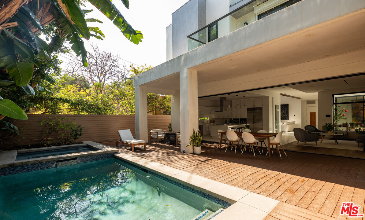 Timeless modern architectural privately tucked away behind gates in the heart of West Hollywood. Thoughtfully blending refined elegance and curated serenity, this light-filled residence is defined by clean lines, balanced scale, and organic finishes. The main level unfolds in an expansive open, flowing layout that articulates a harmonious connection between dining, living, and a chef's kitchen equipped with top-of-the-line appliances and a generous island. Wall-to-wall glass pocket doors seamlessly integrate indoor-outdoor living. The outdoor oasis is framed by meticulously manicured hedges, providing complete privacy while enjoying the swimmer's pool and hot tub, outdoor kitchen, and covered patio for dining al fresco. A dramatic floating staircase leads to the primary retreat on the upper level featuring a balcony, vast walk-in closet, and luxurious en-suite. Three additional bedrooms with en suites, all ample in size, complete this highly functional floor plan. Fully automated smart home system, Control4 and solar panels ensure efficiency. An active short term rental permit also provides a valuable income opportunity.