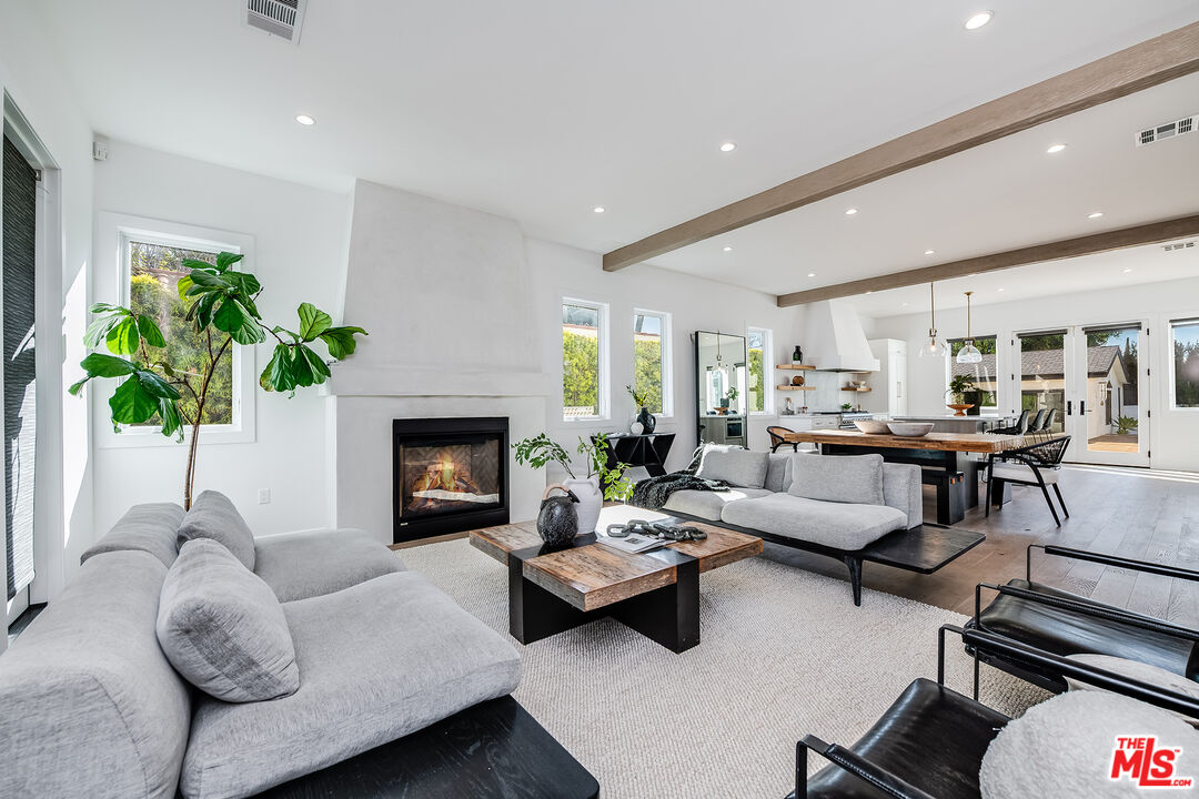 Epitomizing California's relaxed luxury, this four-bedroom modern traditional home in white-hot Brookside, near Hancock Park, is filled with light, style, and sophisticated charm. The heart of the 3462+/-square-foot home is an open-concept living room, dining room, and kitchen with hardwood floors, exposed ceiling beams, large windows and glass doors, and a fireplace. Cooks will appreciate the kitchen's elegant Carrara marble countertops and six-burner dual-oven Thermador range. The four bedrooms include a generous, airy, and bright master bedroom with two balconies and a versatile space perfect for a relaxing lounge. The six stylish baths have quartz counters and designer fixtures; the spa-inspired en suite master bath includes a soaking tub and a glass-enclosed shower. Multi-zone air conditioning and an alarm system are among the modern amenities. A deck encourages alfresco entertaining or soaking up the sun beside the alluring pool and spa. A two-car garage completes the picture.
