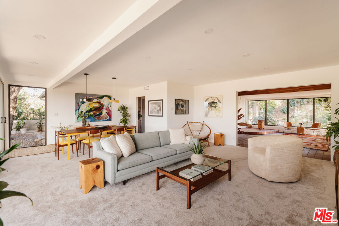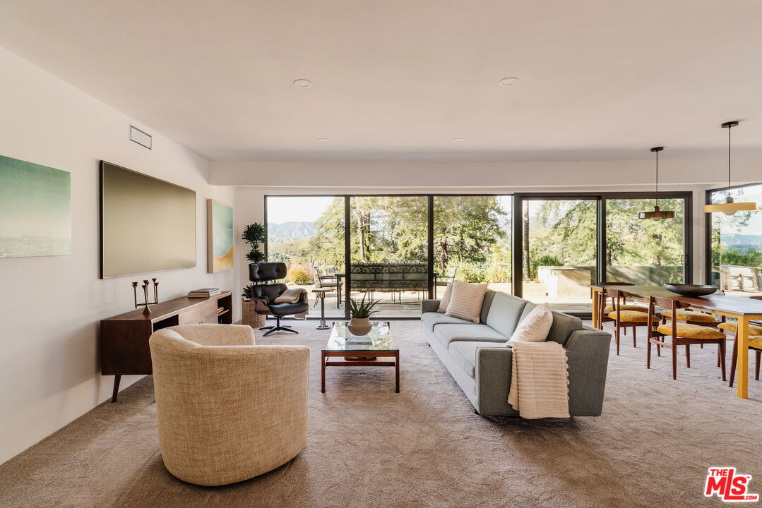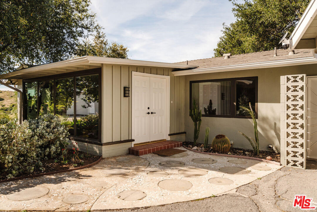 Imagine waking up to panoramic views that stretch to the distant mountains, all from your own incredible, otherworldly hilltop retreat in Shadow Hills! Perched on a secluded knoll, this ranch-style Mid-century home offers 3 bedrooms and 2 bathrooms on nearly 1.4 acres of impressive land, blending timeless mid-century character with thoughtful modern conveniences to create a truly one-of-a-kind residence. The property also features a separate 1-bedroom, 1-bath guest house, offering flexibility for visitors, a home office, or additional living space. A circular driveway guides you to double doors that open into a spacious foyer, where tile flooring, a wood-accented ceiling, and streams of natural light set a warm, inviting tone. Floor-to-ceiling windows line the living and dining areas, framing breathtaking vistas against the foreground of your own picturesque backyard. Host dinner parties as the sky shifts colors outdoors, relax under your trees' dappled shade, or enjoy a peaceful morning coffee with nothing but endless sky in sight. The kitchen features tiled countertops, sleek wood-grain-style cabinetry, and a walk-in pantry that keeps everything within reach. Your primary suite offers a generous closet, a soothing ensuite with a striking shower, a private patio, and direct access to the scenic rear gardens. Your treetop guesthouse with its own balcony captures equally stunning views. With a separate laundry room, ample storage, a greenhouse, and even an extra-large chicken coop, every detail creates versatility for any lifestyle. Located near Burbank, Glendale, I-5, and I-210, this distinctive abode is an opportunity not to be missed. Come see how extraordinary life here can feel!