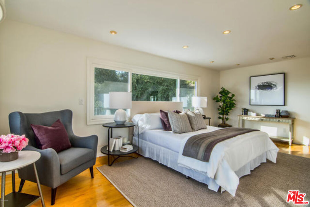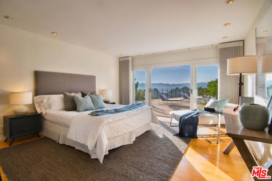 CAN'T HELP FALLING IN LOVE~ Come And Make this Elvis Presley 1960's 70's Retreat Your Forever Home!!! Stunning One-Story Mid-Century Retreat with Spectacular Views! Located on a quiet, private cul-de-sac just 10 minutes from Rodeo Drive. This fully gated mid-century home offers exceptional privacy, tranquility, and effortless indoor/outdoor living. Thoughtfully remodeled inside and out, the residence showcases refined design elements, impeccable craftsmanship, and panoramic canyon views from nearly every room. A formal entry leads to an expansive coffered living room with a fireplace and seamless access to the outdoor terrace. The modern chef's kitchen equipped with professional-grade appliances features a bright breakfast area and opens to the formal dining room with an impressive 11-foot pitched ceiling and custom marble decorative shelving. Walls of glass throughout the home flood the interiors with natural light and open directly to the terrace, creating an ideal setting for entertaining. Property offers TWO luxurious PRIMARY SUITES situated on opposite ends of the home for ultimate privacy. One includes a generous sitting room, while the other features dual walk-in closets. Both suites offer spa-like bathrooms, ample storage, and serene canyon views. A third guest or family suite with its own bath and a separate office complete the versatile interior layout. Additional features include:* Newly designed architectural entry gates and front door* Beautiful hardwood floors and recessed lighting* 8-camera security system and indoor/outdoor sound system* Two-car garage plus under-house storage. This home was thoughtfully designed and constructed on Caissons, providing a deep engineered foundation designed for long-term stability and peace of mind. Outside, an expansive terrace overlooks the canyons and features a heated swimming pool and hot tub perfect for relaxing or hosting gatherings in a serene, private setting. This exceptional property combines mid-century charm, modern luxury, and breathtaking views in one of the most desirable Beverly Hills- Post location.