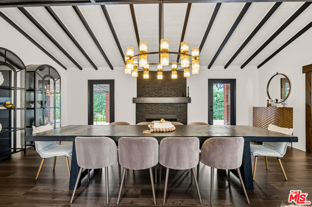 Introducing a timeless Montecito-style Spanish estate, tucked away on a private cul-de-sac in Northridge. Resting on a half-acre lot, this gated property offers 5 bedrooms, 4 bathrooms, and over 3,300 sq. ft. of thoughtfully designed living space, including a private guest house/ADU with its own kitchen, bedroom, and entrance.The main residence features a spacious open floor plan ideal for entertaining, with a light-filled living room, formal dining room with fireplace, and direct access to multiple patios. A recently updated chef's kitchen with its own fireplace, a separate laundry area, and 4 generously sized bedrooms provide both comfort and convenience.Resort-style living awaits outdoors with a heated pool and spa, lush gardens, and multiple seating areas for dining and entertaining. The circular driveway, detached garage, and manicured landscaping create a sense of privacy and sophistication.This is a rare opportunity to own a private retreat that combines timeless character with modern updates and resort-inspired amenities.