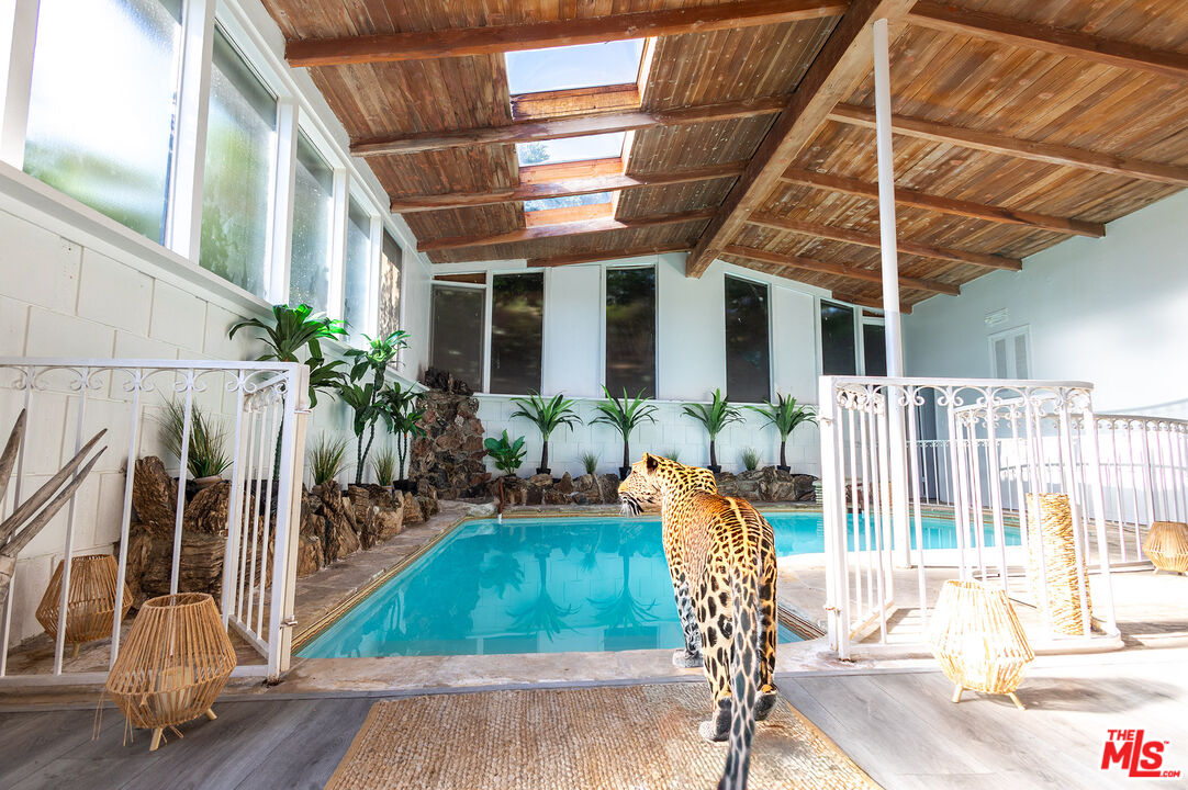 Perched atop a private knoll in Beverly Hills Post Office, 9924 Beverly Grove Drive commands panoramic views stretching from Downtown Los Angeles to the Pacific Ocean. Tucked away on a quiet private road and surrounded by some of the area's most notable residents, including LeBron James, Lisa Kudrow, and Kylie Jenner, this hillside retreat offers an uncommon combination of privacy, prestige, and long term potential. The existing mid century residence spans approximately 2,582 square feet with three bedrooms and three bathrooms. At the heart of the home, a striking indoor pool sits beneath three oversized skylights, flooding the space with natural light and creating a dramatic spa like atmosphere rarely found in Beverly Hills properties. High ceilings throughout enhance the sense of volume and openness, while the main living areas were thoughtfully designed to frame sweeping city to ocean views. Set on nearly half an acre, the property presents meaningful upside for multiple buyer profiles. For a mid century enthusiast, it offers the opportunity to thoughtfully restore and modernize a classic hillside retreat with extraordinary bones. For those exploring expansion, a recent underbuilt analysis indicates the potential to build approximately 5,300 to 6,000 square feet across multiple levels, subject to buyer verification. Properties that combine panoramic views, private road access, architectural character, and expansion flexibility in BHPO are increasingly limited. Whether preserved and elevated or reimagined into a larger custom estate, 9924 Beverly Grove Drive represents a rare opportunity in one of Los Angeles' most sought after hillside enclaves.