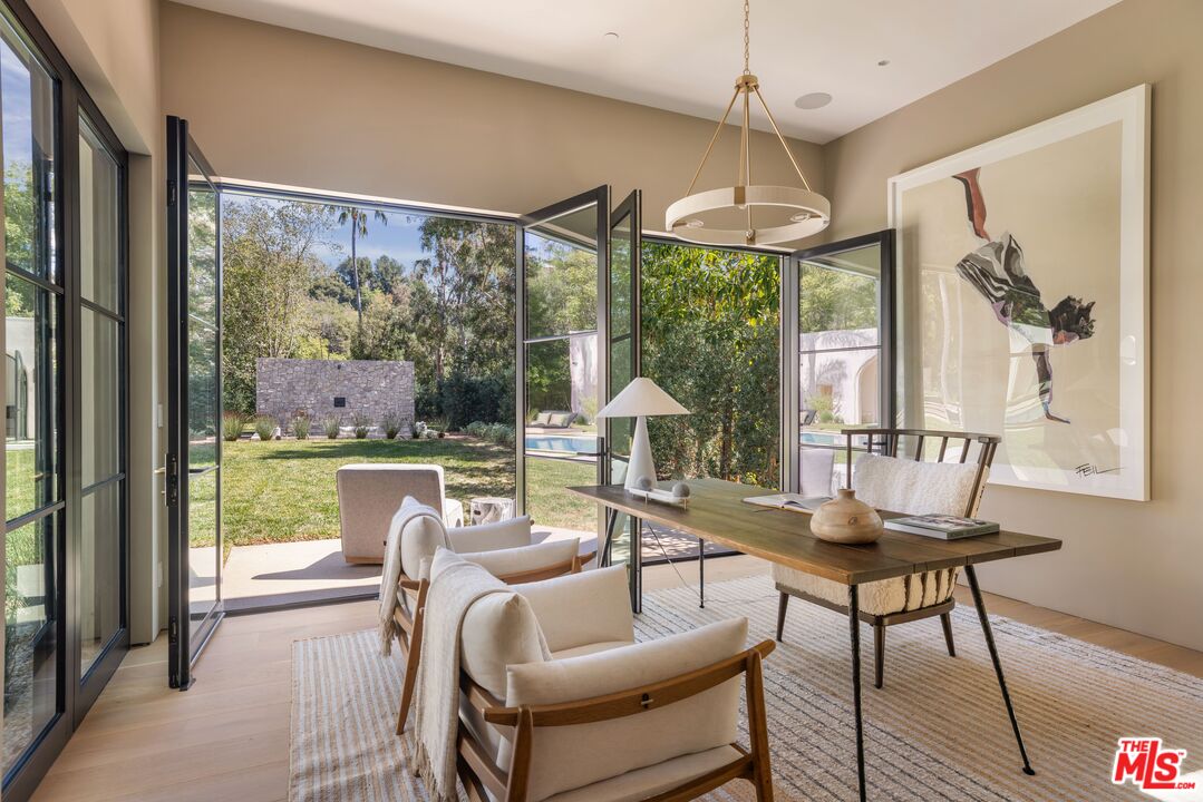 The Liebe compound is a premier romantic destination home offering an enchanting mix of the intimate, the vibrant, and the tranquil. Redefining the urban sanctuary for the global stage, this 1.3-acre Moroccan-modern compound is a rare architectural estate perfectly positioned for private, sophisticated living and for Los Angeles' upcoming spotlight during the World Cup and Olympic Games. The design, both vibrant, and filled with modern energy reflects a romantic classicism in the repetition of the arches and walk loggias that are a thematic emphasis for both the upper and lower levels throughout the household. The Loggias also act as a transition space allowing for moments of beauty and serenity as you enter and exit from the main home to the adjoining out buildings through sleek contemporary glass doors. Across four distinct structures, this nine-bedroom, fourteen-bathroom estate offers the ultimate zero-edge pool rivaling the finest hotels on the global stage, a private theater, gym structure, pool/gaming structure, in-house spa and a 600-bottle showcase wine wall. From the 15-car motor court and independent two-story staff house to the sprawling 2,400-square-foot primary sanctuary and three professional-grade kitchens, every inch is engineered for high-security, large-scale entertaining, and total seclusion. This is the very essence of a secret garden compound, both home and wellness center, a retreat from the bustle of the center of Beverly Hills just 10 minutes away. For those who have globetrotted their entire lives, this is a respite oasis, a home as a singular compound; your own personal palace and gardens sited behind gates and privacy. This is a destination home that gives way to an entire world of relaxation, serenity, health, and wellness.Approved plans ready to build a pickleball court while leaving the soccer field lawn in place and all surrounded by mature landscaping on a quiet street in the Estate Section of Benedict Canyon approximately 25 minutes to Los Angeles' premier private airport - Van Nuys private, coveted Warner Avenue Elementary and 10-30 minutes to almost every top private school in Los Angeles. This is a prime example of new construction that delivers state of the art functionality with architectural romance.