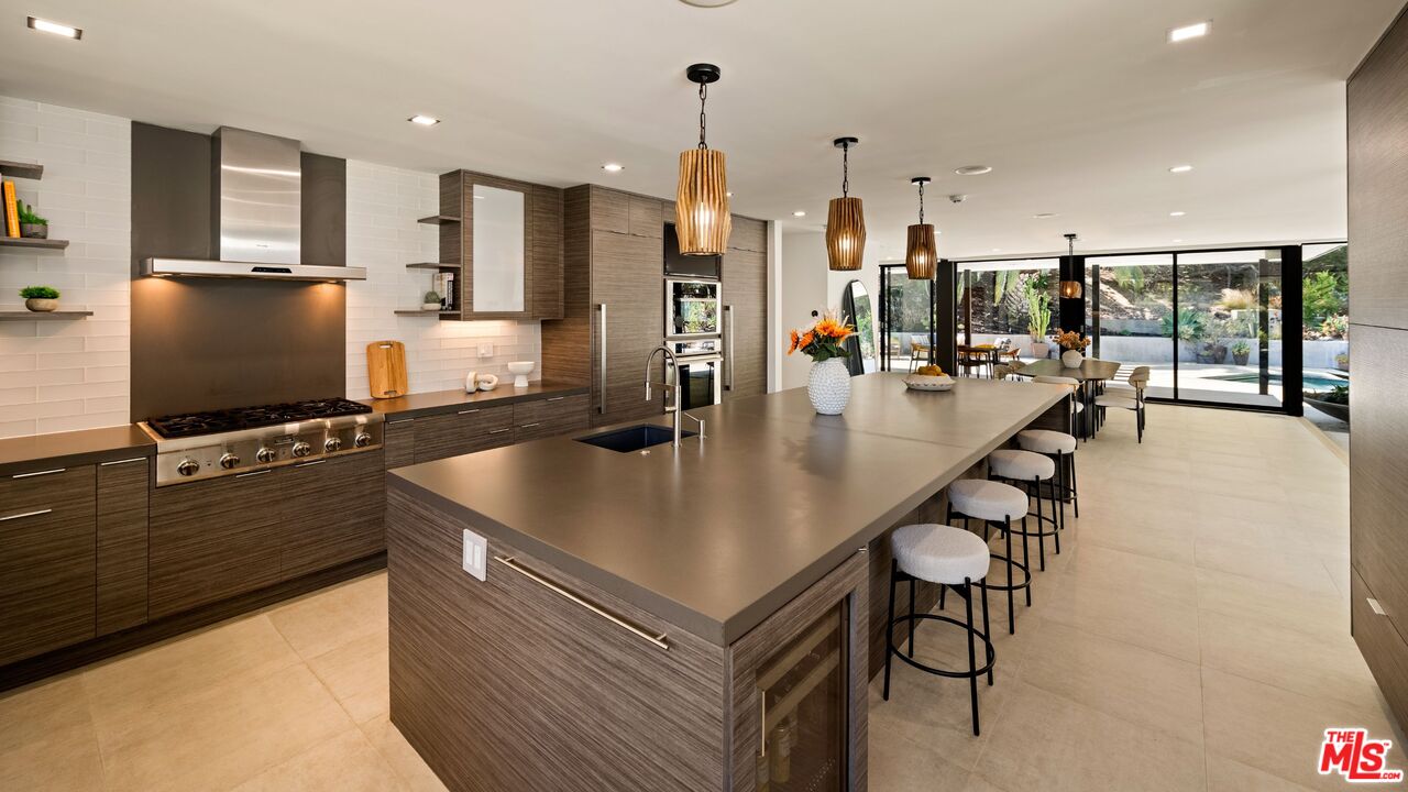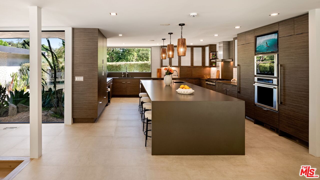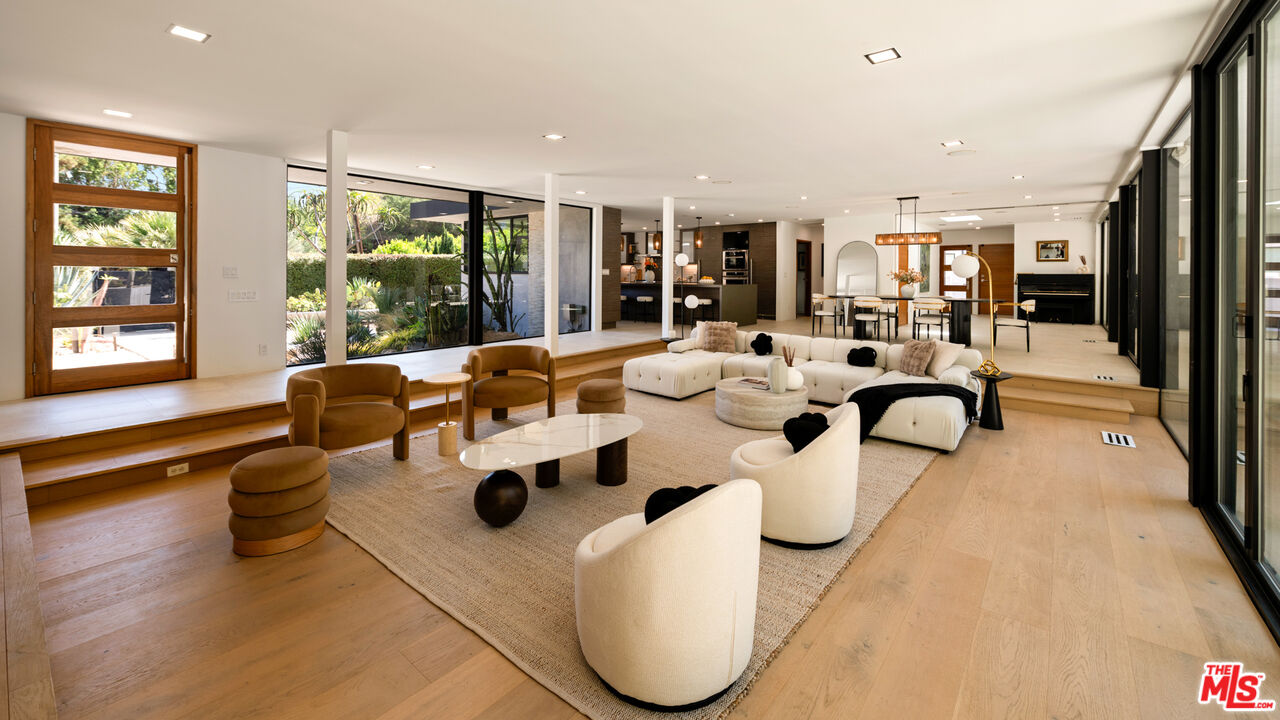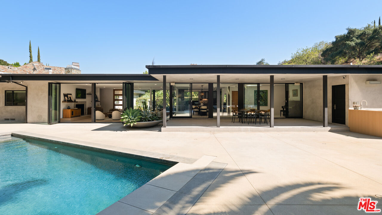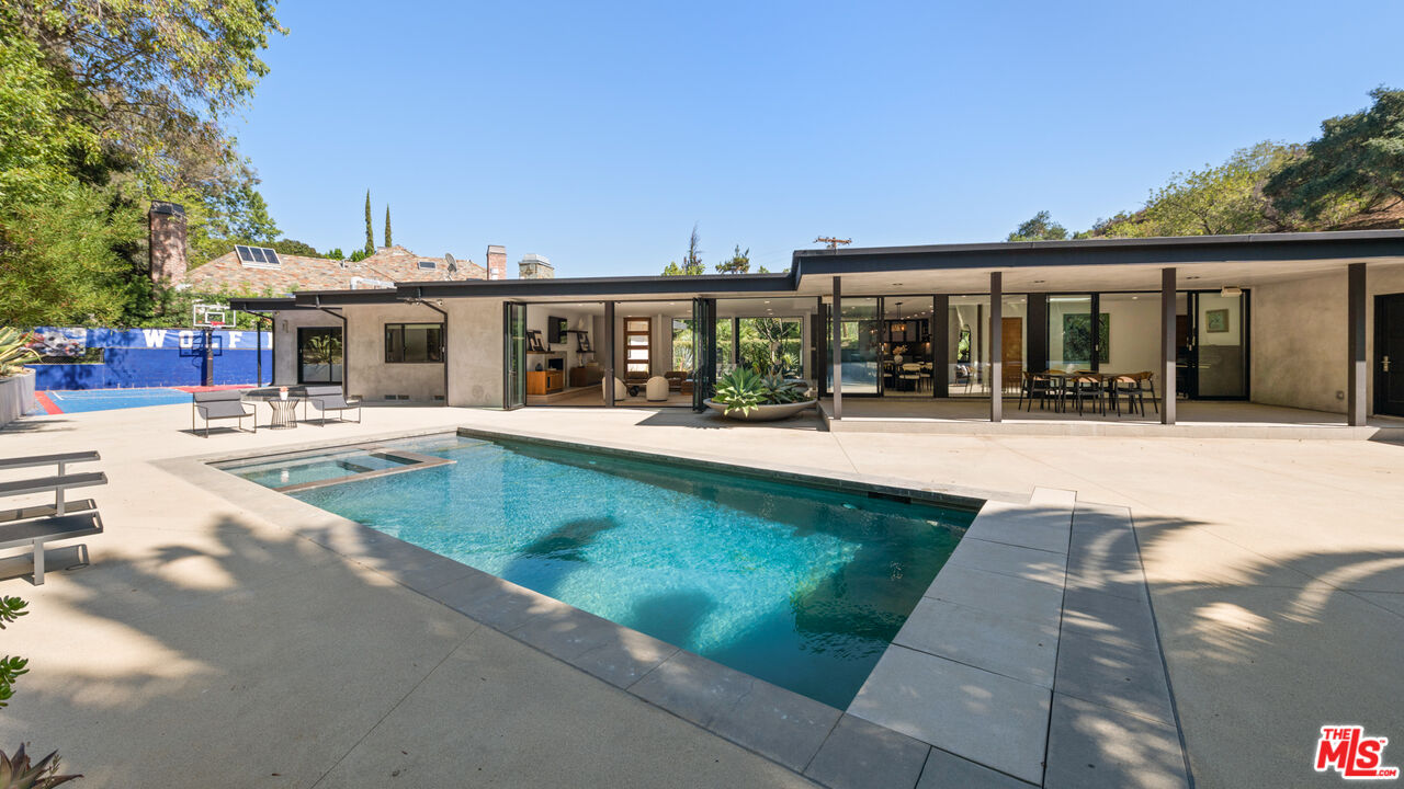 Over 1 acre private compound, fully secluded, completely remodeled mid-century contemporary home with all the latest and greatest amenities. This estate offers the perfect fusion of refined global design, ultimate privacy, and seamless California indoor-outdoor living. Incredible finishes curated from around the world enhance every corner of this 6-bedroom, 7-bathroom residence, creating a timeless yet modern sanctuary. Features include dual private primary suites, a chef's kitchen outfitted with premium Thermador and Viking appliances, smart home automation, full solar power with backup generator, a custom theater, and a state-of-the-art gym. The lush, private backyard is a true retreat, featuring a sparkling pool and spa, outdoor BBQ island, cozy firepit, and a versatile sports court. With its striking architecture, open flow, curated finishes, and coveted Beverly Hills location, this home is truly a Legacy Estate!